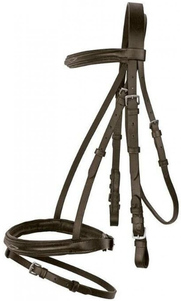 dodávána s popruhovými otěžemi s koženými zarážkami