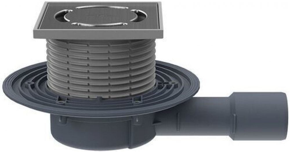 Podlahová vpust s vodorovným odtokem DN40/50, zápachová uzávěrka Primus blue - tzv. suchý sifon, nástavec 12-70 mm/123x123 mm, třída zatížení K - 300 kg, stavební výška 57 mm, vtoková mřížka nerezová ocel 115x115 mm, hydraulická kapacita 10mm-0,40l/s, 20 mm-0,45l/s, materiál PP, ABS.