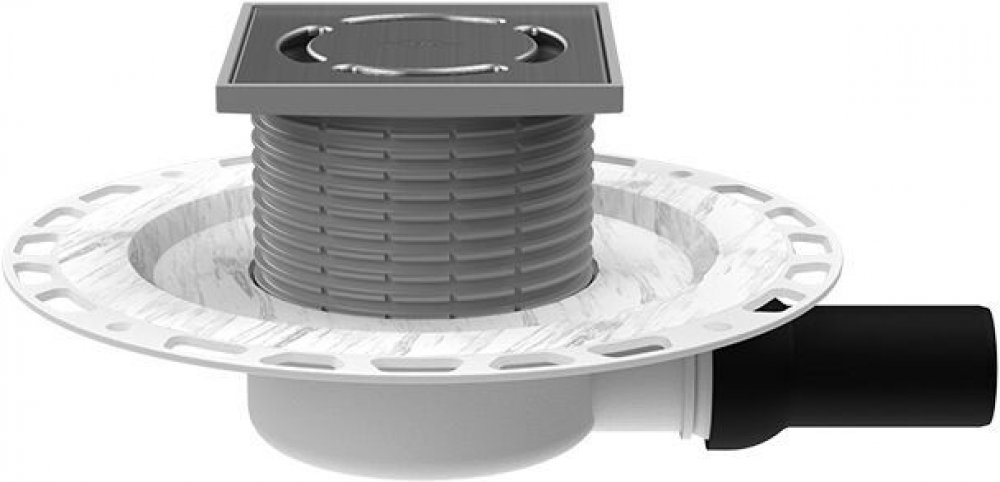 Podlahová vpust s vodorovným odtokem DN40, s nakašírovanou textilií na izolační přírubě, se zápachovým uzávěrem Primus blue - tzv. suchý sifon, nástavec s rámem 123x123 mm s možností zkrácení 2-70 mm a vtokovou mřížkou 115x115 mm z nerezové oceli, pro tenkovrstvé skladby podlah, třída zatížení K3 - 300kg, stavební výška 69 mm, hydraulická kapacita 10 mm-0,40l/s, 20 mm-0,45l/s, materiál PE, ABS, nerezová ocel. HL90PrblueD, HL90PrblueD_HL