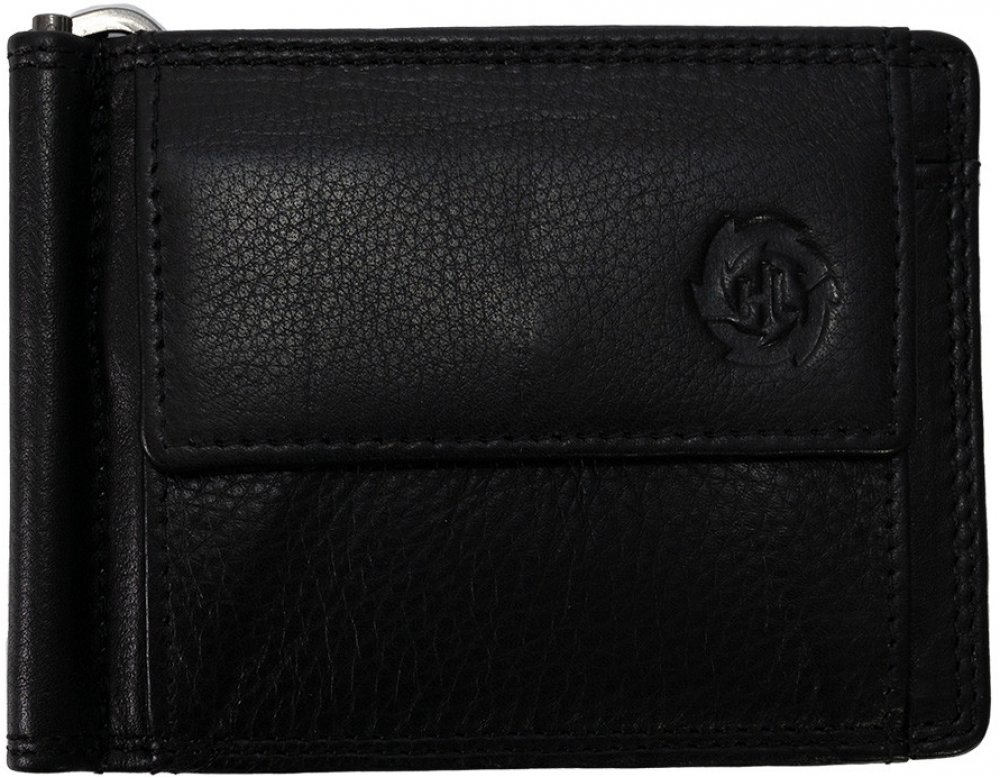 Kožená pánská peněženka se sponou na bankovky a osmi přihrádkami na karty. V černém provedení.