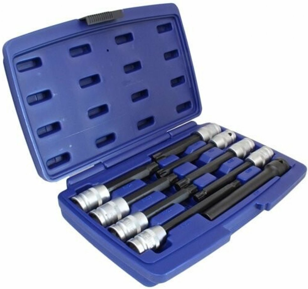 Sada speciálních hlavic – klíčů na šrouby hlav válců ASTA A-SC9HS Určeno pro povolování a utahování šroubů v hlavách válců (hlavách motorů) nejrozšířenějších vozidel na našich silnicích. Rozměr vodicího čtyřhranu: 1/2“ Souprava 9 kusů obsahuje: 2x zástrčná hlavice TORX: T55 x 140 mm; T70 x 120 mm 1x nástrčná hlavice TORX-E: E12 x 150 mm 2x zástrčná hlavice XZN: M10 x 140 mm; M12 x 140 mm 4x zástrčná hlavice RIBE: M10 x 165 mm; M12 x 120 mm; M13 x 120 mm; M14 x 120 mm Vyrobeno z chrom-vanadové (Cr-V) oceli. Dodáváno v plastové kazetě s vnitřním uspořádáním – každá hlavice má svoje označené místo.