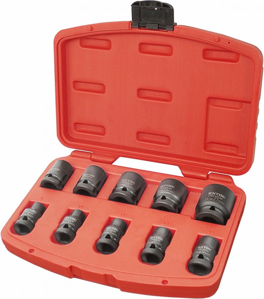 Hlavice nástrčné rázové 1/2", sada 10ks, 9-27mm, CrMoV EXTOL PREMIUM