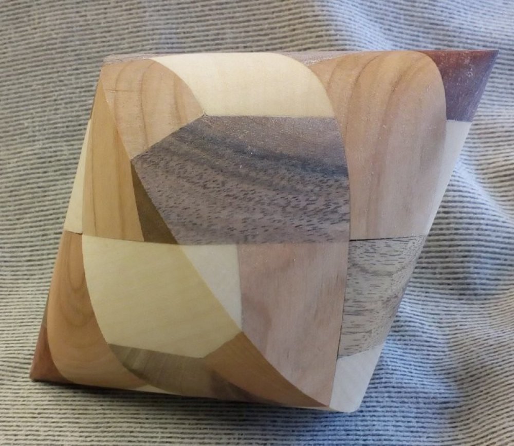 Krásný dřevěný "trikový" hlavolam, který je složen ze dvou částí, které do sebe přesně zapadají. Hlavolam je vhodný pro vložení nějakého překvapení a obdarovaný se musí pokusit dvojitý jehlan nenásilnou formou otevřít. Rozměry hlavolamu: 77 mm. Rozměry vnitřního prostoru: cca 30 x 30 x 30 mm. Vyrobeno v ČR.