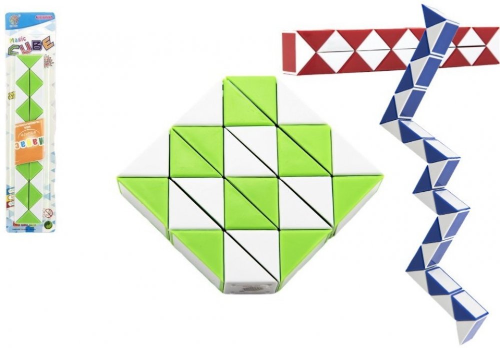 Magický had je slavný hlavolam nebo spíše skládačka či puzzle, ze kterého můžete skládat nejrůznější prostorové tvary, ať už fascinující geometrické struktury nebo obyčejná zvířátka. Nenechá vás se nudit a dokonale rozvíjí tvořivé myšlení. Věk: od 3 let Materiál: plast Rozměr: 20 cm Barva hada dle aktuální dostupnosti od dodavatele, nelze vybírat.