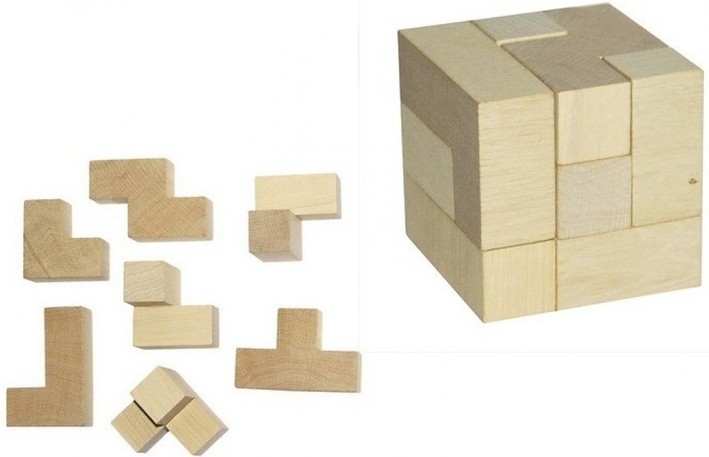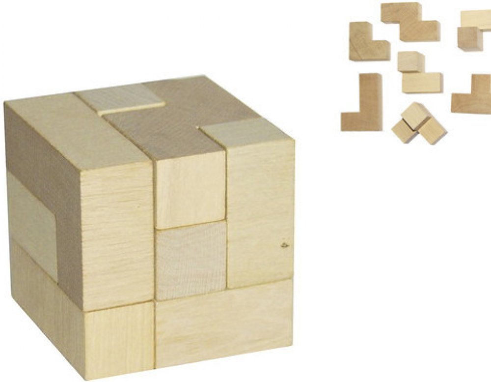 Krásný dřevěný hlavolam ve tvaru kostky potěší každého malého řešitele hlavolamů. Úkolem je poskládat jednotlivé díly tak, aby vytvořily 3D kostku. Rozvíjí logické a prostorové myšlení. Hlavolam je vyroben ze dřeva a skládá se ze 7 dílků. Výrobek spplňuje požadavky EU na bezpečnost hraček.