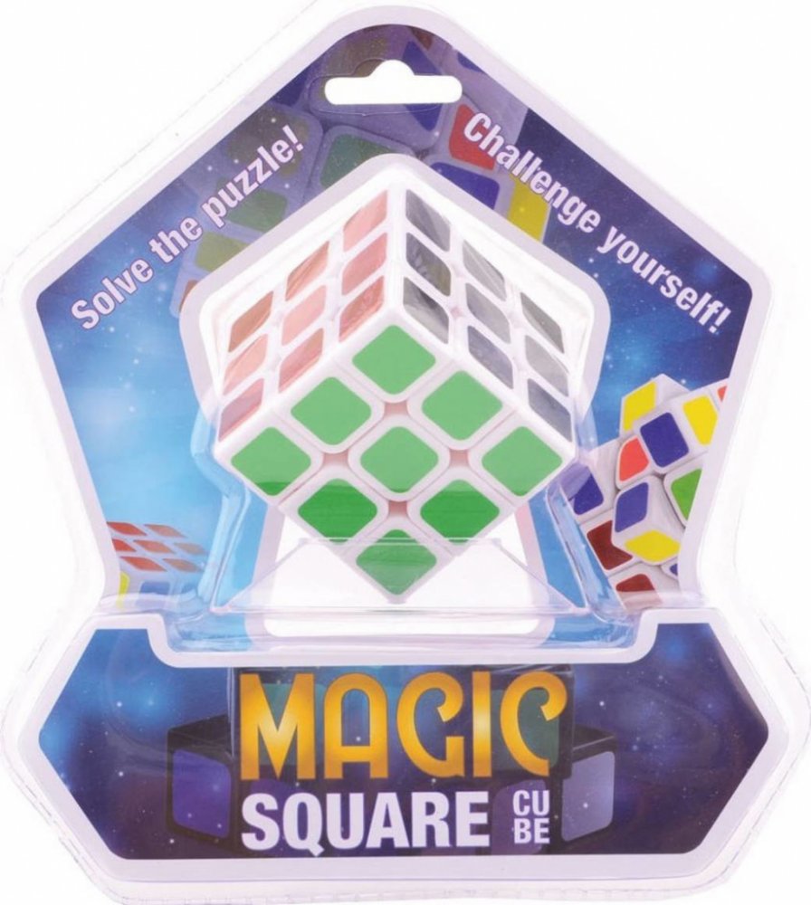 Hra magická (Rubikova) kostka, plastový skládací hlavolam 3x3, v bílé barvě.