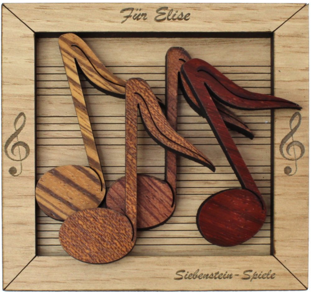 Jedná se o atraktivní dřevěný hlavolam, který obsahuje 4 dílky ve tvaru hudebních not. Chcete-li vyřešit hádanku, musíte všechny čtyři dílky naskládat (bez překrytí) do rámu.