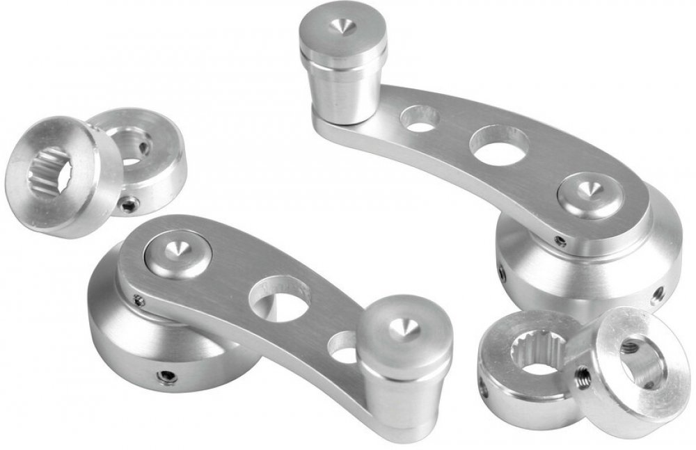 ALUMINIUM RACING LEVERS, 2 tuningové kliky ke stahování oken z ručně kartáčovaného hliníku v High-tech designu v tuningové řadě PILOT od italské firmy Lampa. Balení obsahuje sadu 2 adaptérů o průměru 10mm pro přizpůsobení většině automobilů. Délka kliky je 6cm.