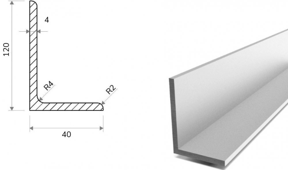 Hliníkový profil L 120x40x4 (EN 6060) patří mezi profilovou hliníkovou ocel nerovnostranného průřezu L jakosti EN 6060, tvrdosti T6 a je známý také jako hliníkový vingl. Má využití především ve stavebnictví a zámečnické výrobě – v místech, kde je ocel namáhána jak staticky, tak dynamicky. Tyto hliníkové profily mají nižší hmotnost než ocelové L profily. Používají se v kovovýrobě, zámečnických dílnách a také ve stavebnictví. Tento hliníkový L profil nerovnoramenný se šířkou 40 mm, výškou 120 mm a tloušťkou stěny 4 mm je dodáván ve výrobních délkách po 6 m s hmotností 10,08 kg. Váha produktu na 1 m je 1,68 kg.