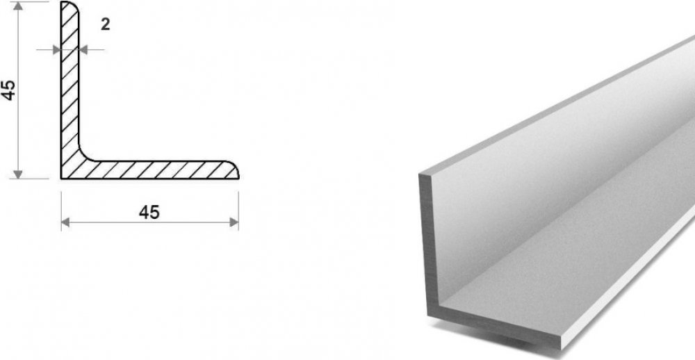 Hliníkový profil L 45x45x2 (EN 6060) patří mezi profilovou hliníkovou ocel rovnostranného průřezu L slitiny EN 6060 a tvrdosti T6. Tento hliníkový úhelník je známý i pod pojmem hliníkový vingl. Tyto hliníkové profily mají nižší hmotnost než ocelové L profily. Používají se v kovovýrobě, zámečnických dílnách a také ve stavebnictví. Tento hliníkový L profil rovnoramenný se šířkou 45 mm a tloušťkou stěny 2 mm je dodáván ve výrobních délkách po 6 m, o hmotnosti 2,94 kg. Váha produktu na 1 m je 0,49 kg.