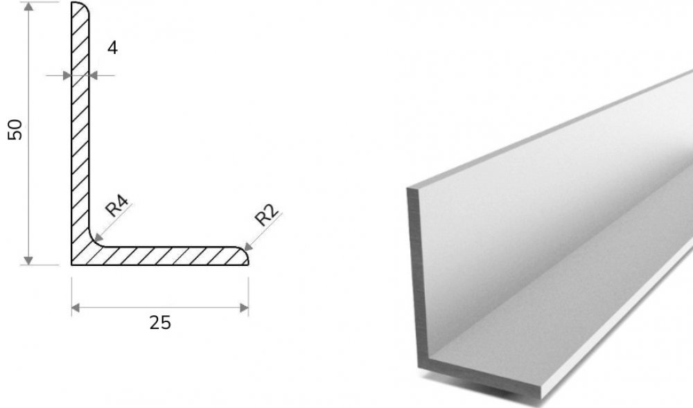Hliníkový profil L 50x25x4 (EN 6060) patří mezi profilovou hliníkovou ocel nerovnostranného průřezu L jakosti EN 6060, tvrdosti T6 a je známý také jako hliníkový vingl. Má využití především ve stavebnictví a zámečnické výrobě – v místech, kde je ocel namáhána jak staticky, tak dynamicky. Tyto hliníkové profily mají nižší hmotnost než ocelové L profily. Používají se v kovovýrobě, zámečnických dílnách a také ve stavebnictví. Tento hliníkový L profil nerovnoramenný se šířkou 25 mm, výškou 50 mm a tloušťkou stěny 4 mm je dodáván ve výrobních délkách po 6 m s hmotností 4,56 kg. Váha produktu na 1 m je 0,76 kg.
