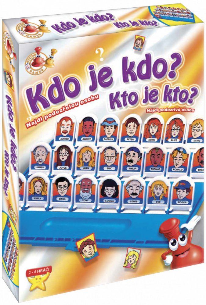 Kdo je kdo? Tato otázka výstižně charakterizuje společenkou hru s podtitulem Najdi podezřelou osobu. Dva týmy soupeří v tom, který z nich má lepší detektivní schopnosti a odhalí rychleji celý gang podezřelých osob (3 osoby). Vaším úkolem je odhalit pachatele viditelného na straně protějšího týmu dříve než váš kolega. Odhalením tří pachatelů se stanete vítězem. Tuto skvělou zábavnou hru si s sebou můžete vzít na cesty, k vodě, či jinam a užít si spoustu rodinné zábavy.