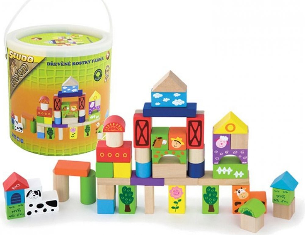 HM Studio kostky farma dřevěné 50 ks