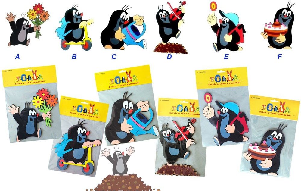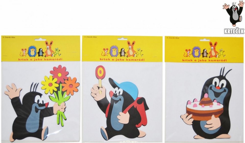 Veselá samolepící dekorace Krtek na stěnu, sklo, nábytek apod. Nástěnné samolepky jsou hezkou dekorací do dětského pokoje. Na výběr je z několika krásných barevných obrázků Krtečka. Stačí jen odstranit vrchní část proužku na zadní straně a přilepit na hladkou stěnu. Můžete si vybrat z 6 různých motivů Krtka. Rozměry výrobku 22cm. Vhodné pro děti od 3 let.