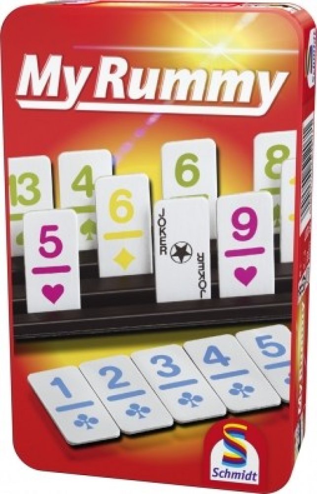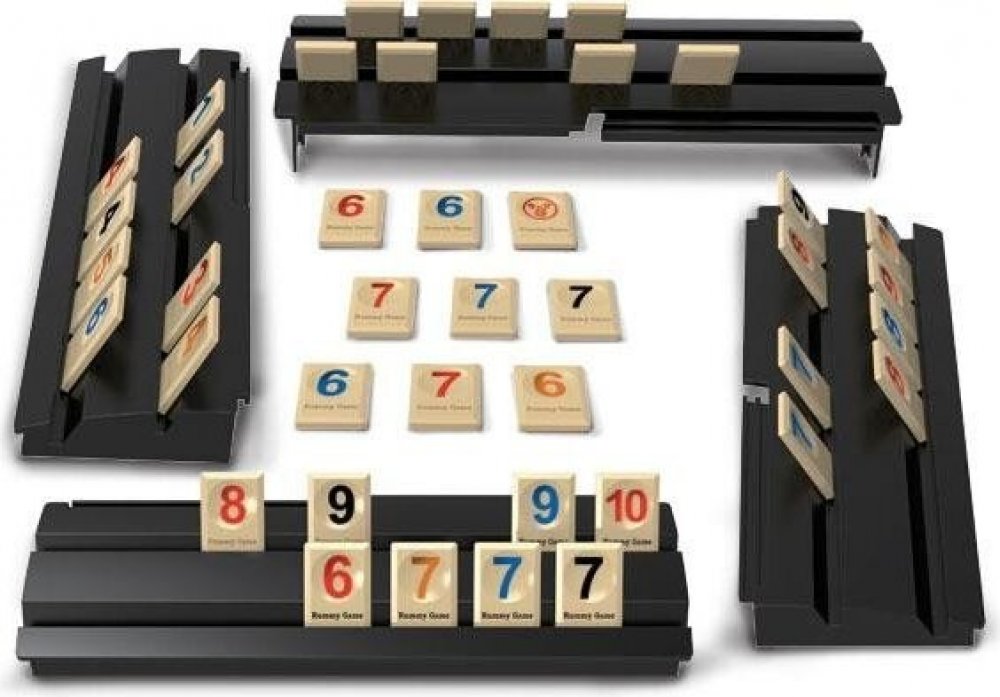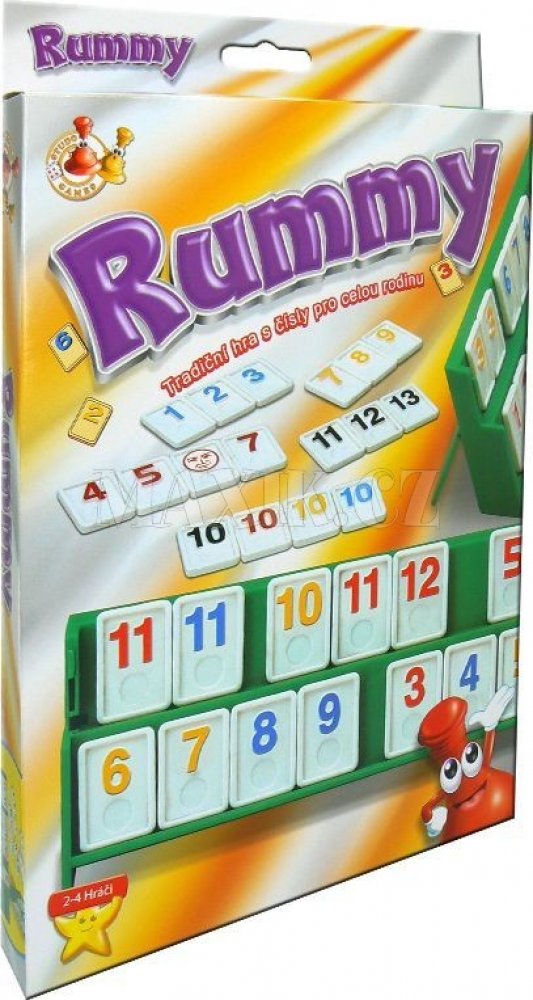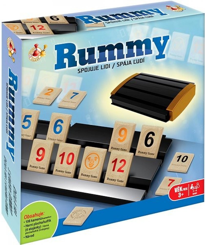 Obsah balení: 4 zásobníky, 104 žetonů s čísly os 1 do 13 ve čtyřech barvách, 2 žetony se žolíkem.