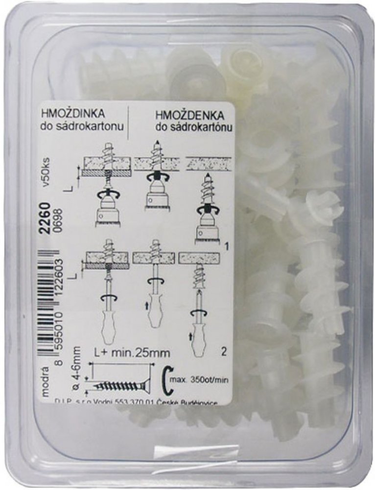 hmoždinka do sádrokartonu plast. 2260 (50ks) plast.obal