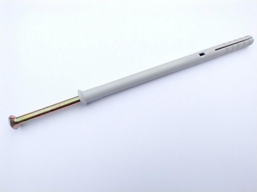 Polypropylenová zatloukací hmoždinka s vrutem a zápustnou hlavou Friulsider. Používá se do stavebních materiálů plných jako beton, přírodní kámen, plná cihla.