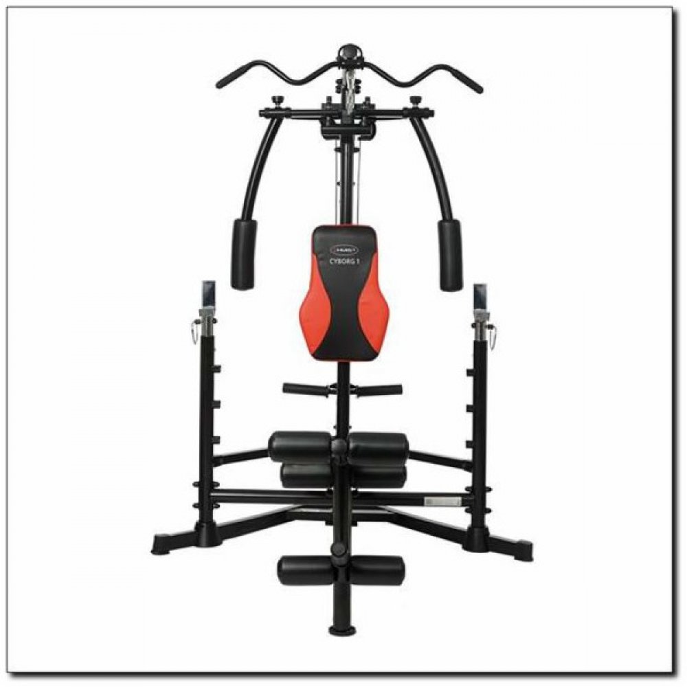CYBORG 1 HMS je prémiové zařízení k domácímu posilování. Jeho charakteristickou vlastností je možnost použití jak olympijských, tak běžných kotoučů - nakládací trny mají průměr 25 milimetrů, ale součástí belení jsou redukční rukávy s průměrem 50 milimetrů.