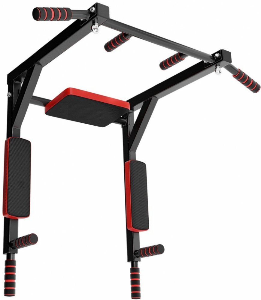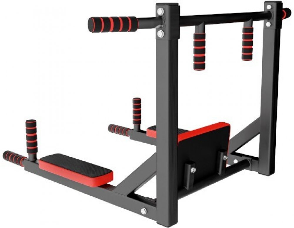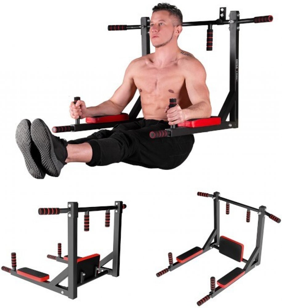 Pokud tedy do háků zavěsíme osu hrazdy, pak budou v pracovní poloze bradla, na kterých můžeme trénovat přítahy nohou k břichu, předkopávání, dipy a podobně. Bradla mají pohodlnou zádovou opěrku a 2 opěrky pro lokty.