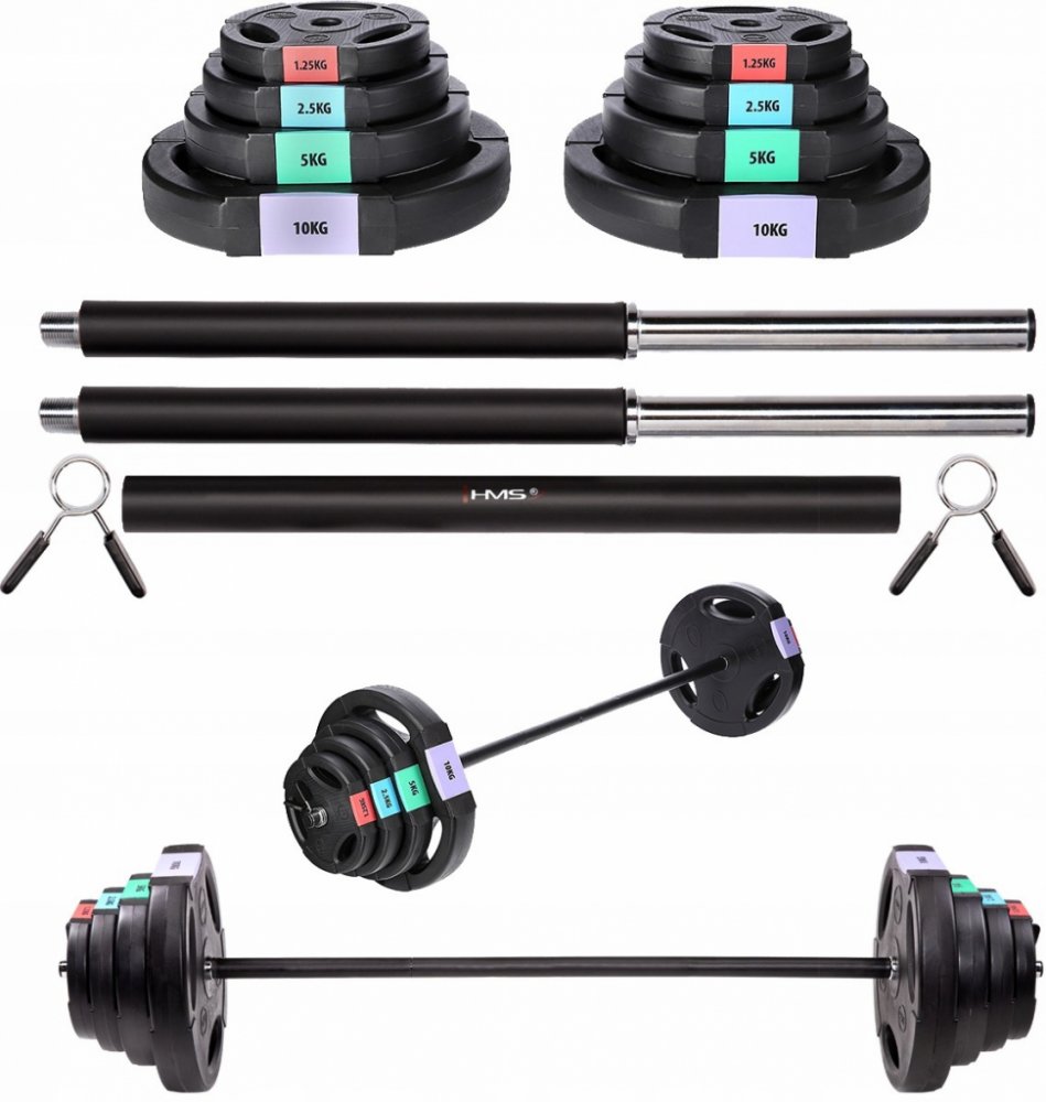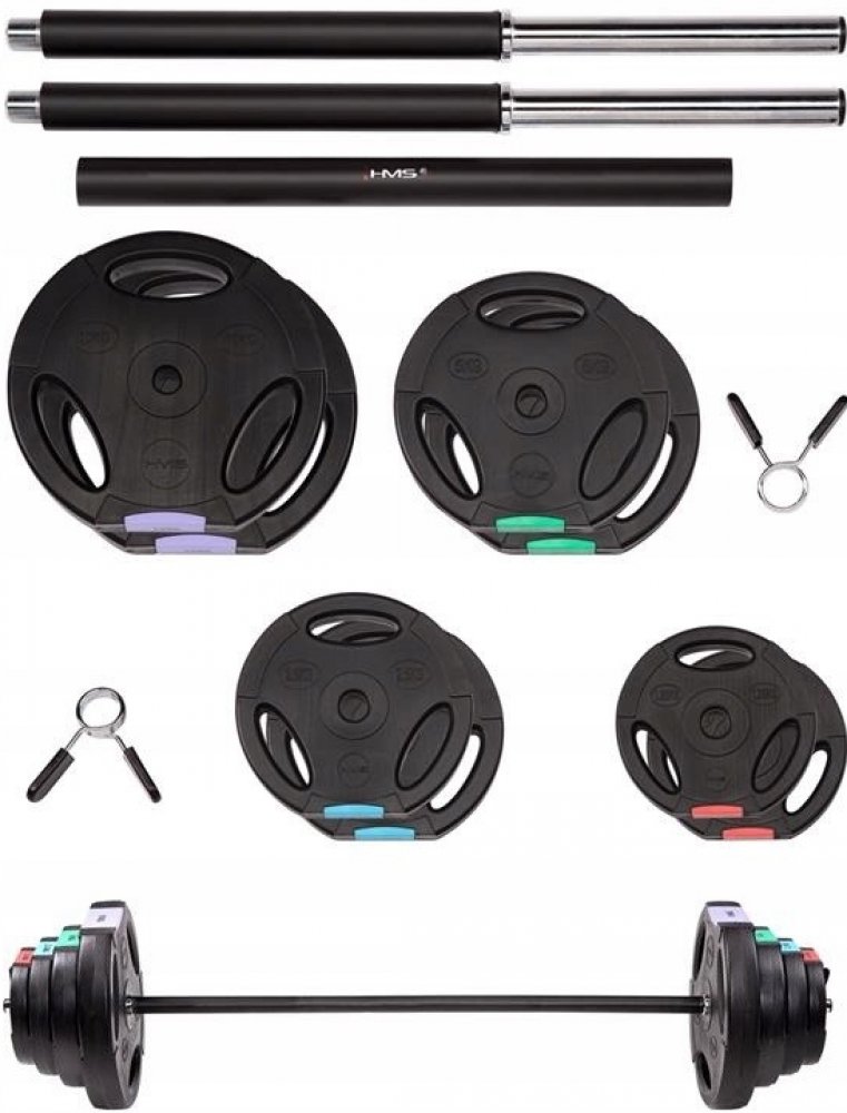 Sada obouruční, nakládací činky o celkové hmotnosti 42 kilogramů, to je HMS GSP40. Nakládací činky patří ke klasickému vybavení každé domácí posilovny.