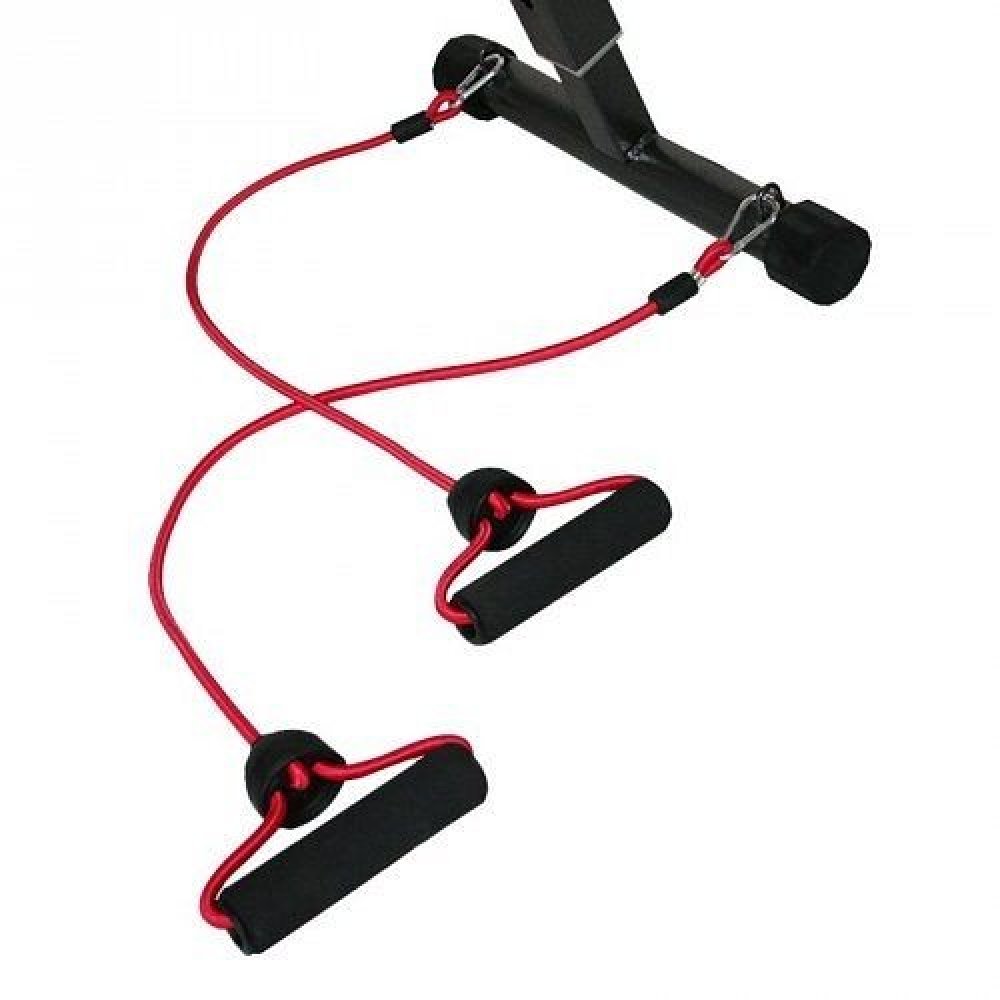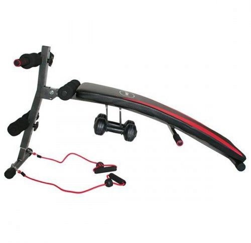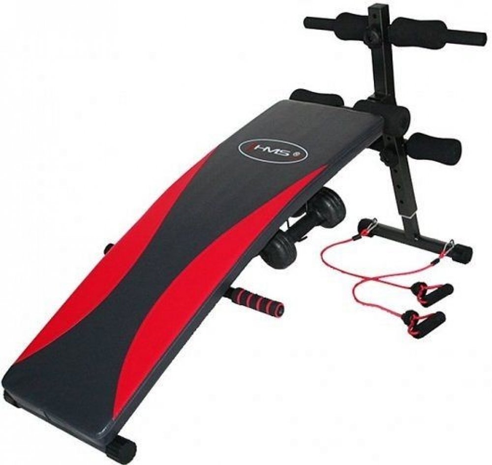 Šikmá lavička se závažím určena pro domácí použití. Je určena k tréninku břišních svalů, boků a páteře. Díky vinylovým činkám může uživatel provádět trénink horní poloviny těla.