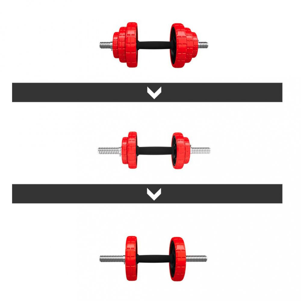 Systém 2v1 – jednoručky i velká osa v jednom setu Sada SGGX HMS obsahuje dvě nastavitelné jednoruční činky s vyměnitelnými kotouči. Pomocí speciálního spojovacího adaptéru lze činky během chvíle propojit a vytvořit obouruční činku.
