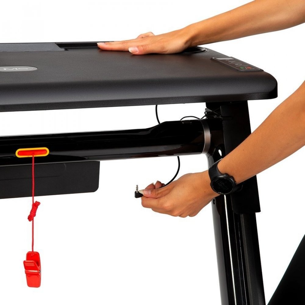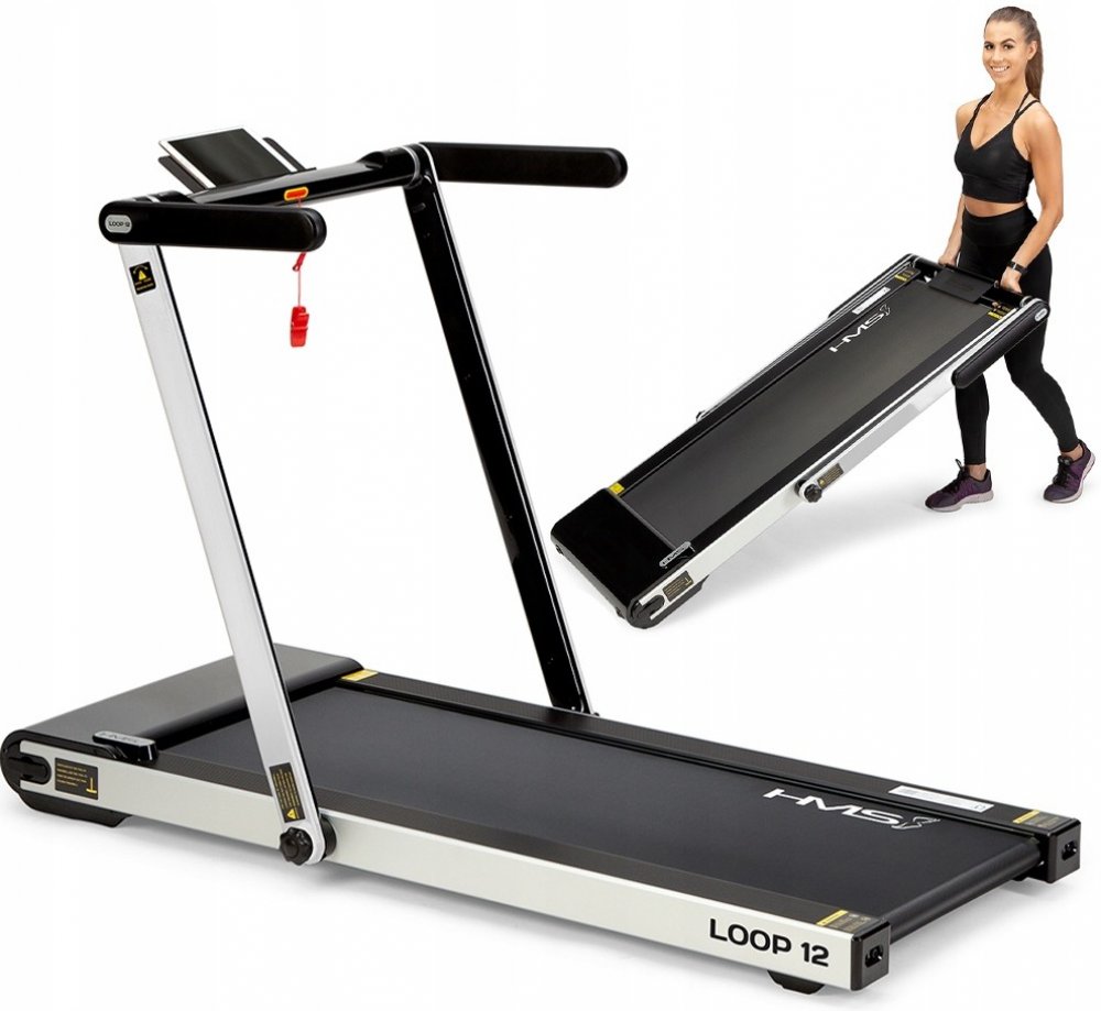 Elektrický běžecký trenažér HMS LOOP12 má moderní design a po složení zabírá velice málo místa.