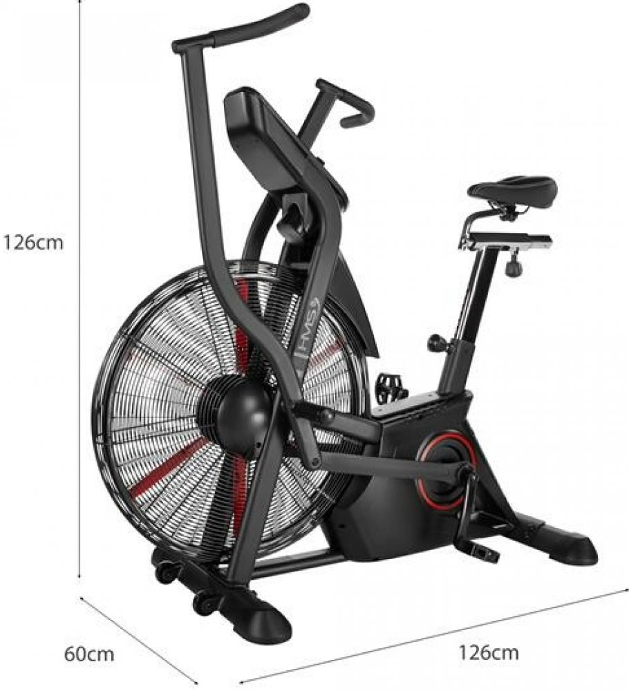Air bike je vybaven LCD displejem, který umožňuje sledovat klíčové parametry tréninku: čas, vzdálenost, rychlost, puls, spálené kalorie a otáčky za minutu. Nastavitelné sedlo ve vertikálním a horizontálním směru umožňuje precizní přizpůsobení pozice podle výšky a postavy, což zajišťuje komfort i při dlouhodobém používání. Praktické doplňky, jako držák na láhev, telefon a transportní kolečka, zvyšují pohodlí při používání zařízení.