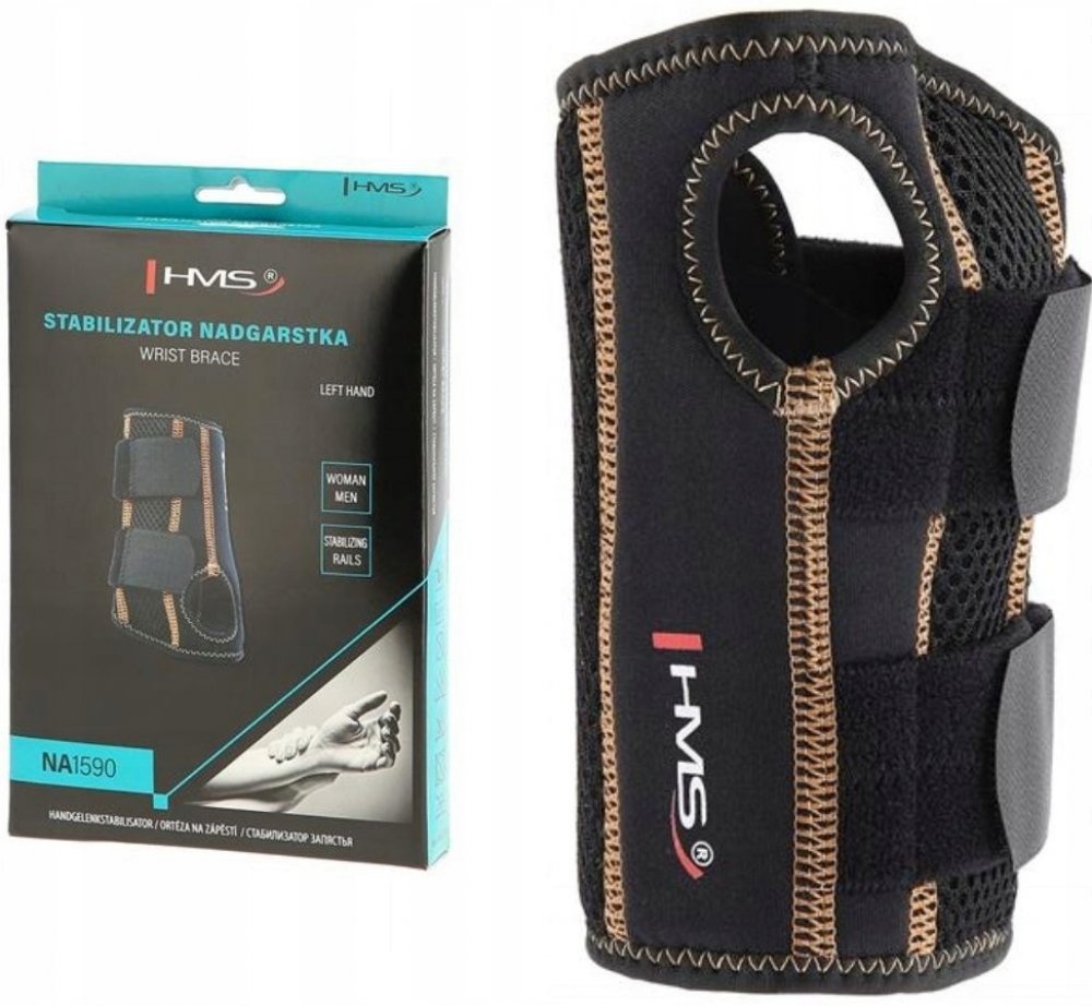 HMS NA1590 je ortéza pro fixaci zápěstí, která díky hliníkovým dlahám zamezije pohybu zápěstí a dlaně. Pohyb prstů a palce zůstává v plném rozsahu bez omezení. Použitý materiál je polyester, který je elastický a po utažení popruhů udržuje zápěstí v teple, tím napomáhá lepšímu prokrvování a tlumí bolest. Popruhy také umožňují přizpůsobení ortézy individuálním potřebám. NA1590 najde využití při léčb...