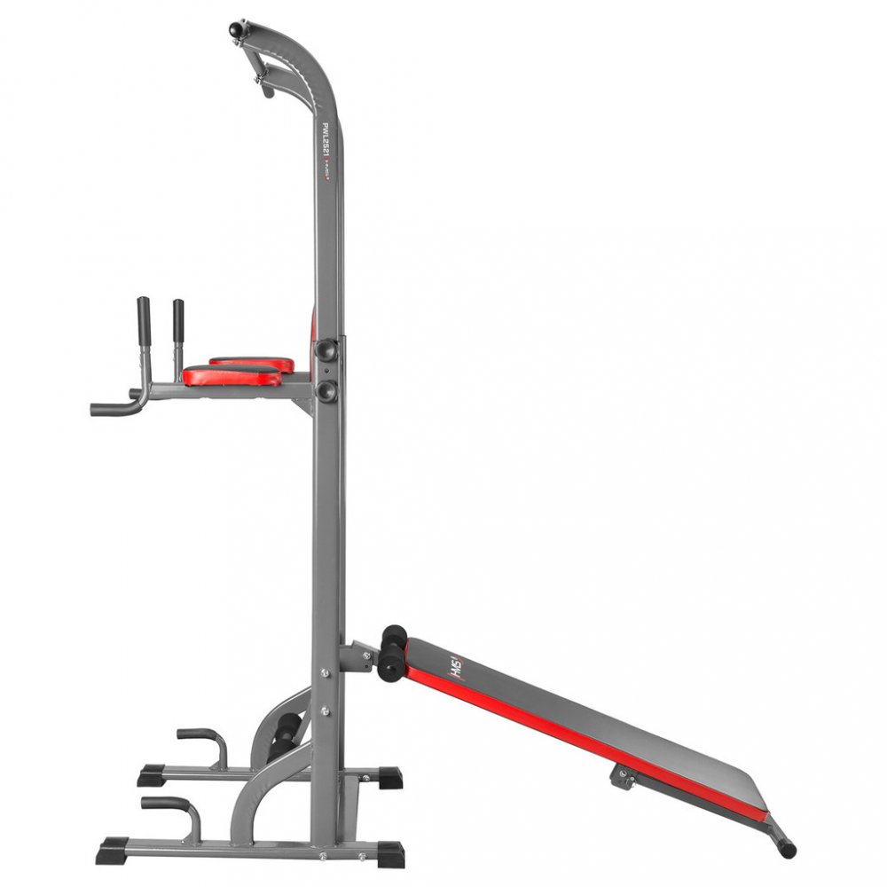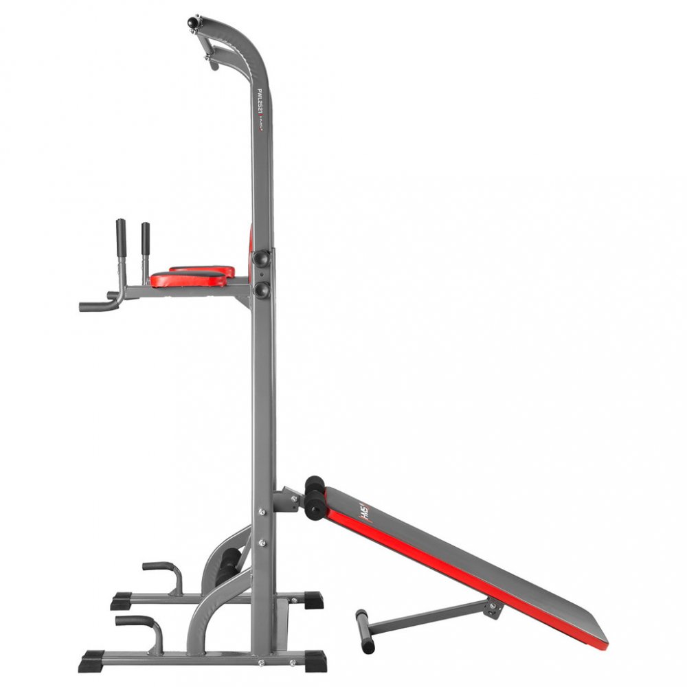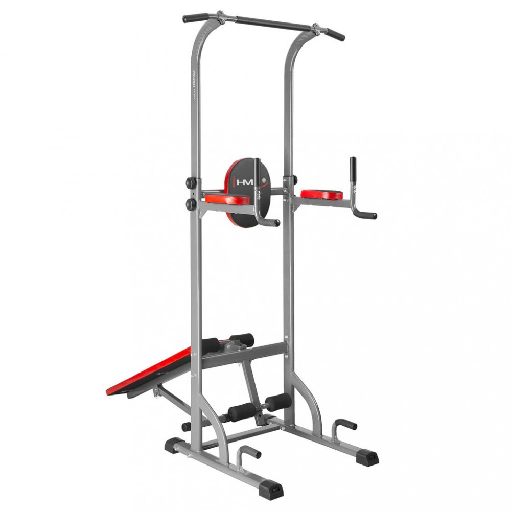 HMS PWL2521 je multifunkční hrazda s podpěrami, bradly a polohovatelnou lavicí. Umožní vám komplexně procvičit všechny svalové skupiny horní poloviny těla - hrudník, zádové svaly, tricepsy a břicho.