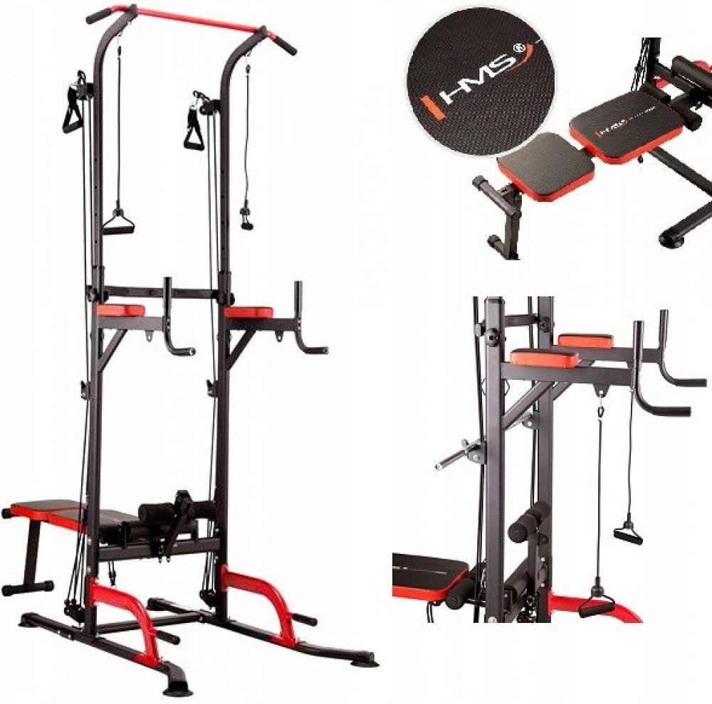 Přítahy na hrazdě a kliky na bradlech neboli "dipy" jsou dva cviky, které velmi silně rozvíjejí dvě skupiny agonistických a antagonistických svalů, tedy nejširší zádové svaly, bicepsy, prsní svaly a tricepsy. Spodní podpěry umožňují provádění hlubokých kliků. Díky tomu svaly při každém pohybu mnohem více protáhneme, což vede k jejich rychlejšímu růstu. S PWL8325 je také možné trénovat břišní svaly díky lavici v šikmé poloze a područkám umístěným na bradlech. Lavičku lze nastavit i do vodorovné polohy, což umožňuje provádět cviky s činkami. Integrovaný držák na velkou činku umožňuje trénovat Bench press, součástí balení je také 120 cm dlouhá osa s průměrem 24 milimetrů. Horní a spodní kladky jsou tvořeny dvěma páry gumových lan, která jle kombinovat pomocí karabin a jejich napínání pomocí ok na hlavním rámu. Všechny komponenty dělají z tohoto výrobku HMS skutečně multifunkční zařízení.