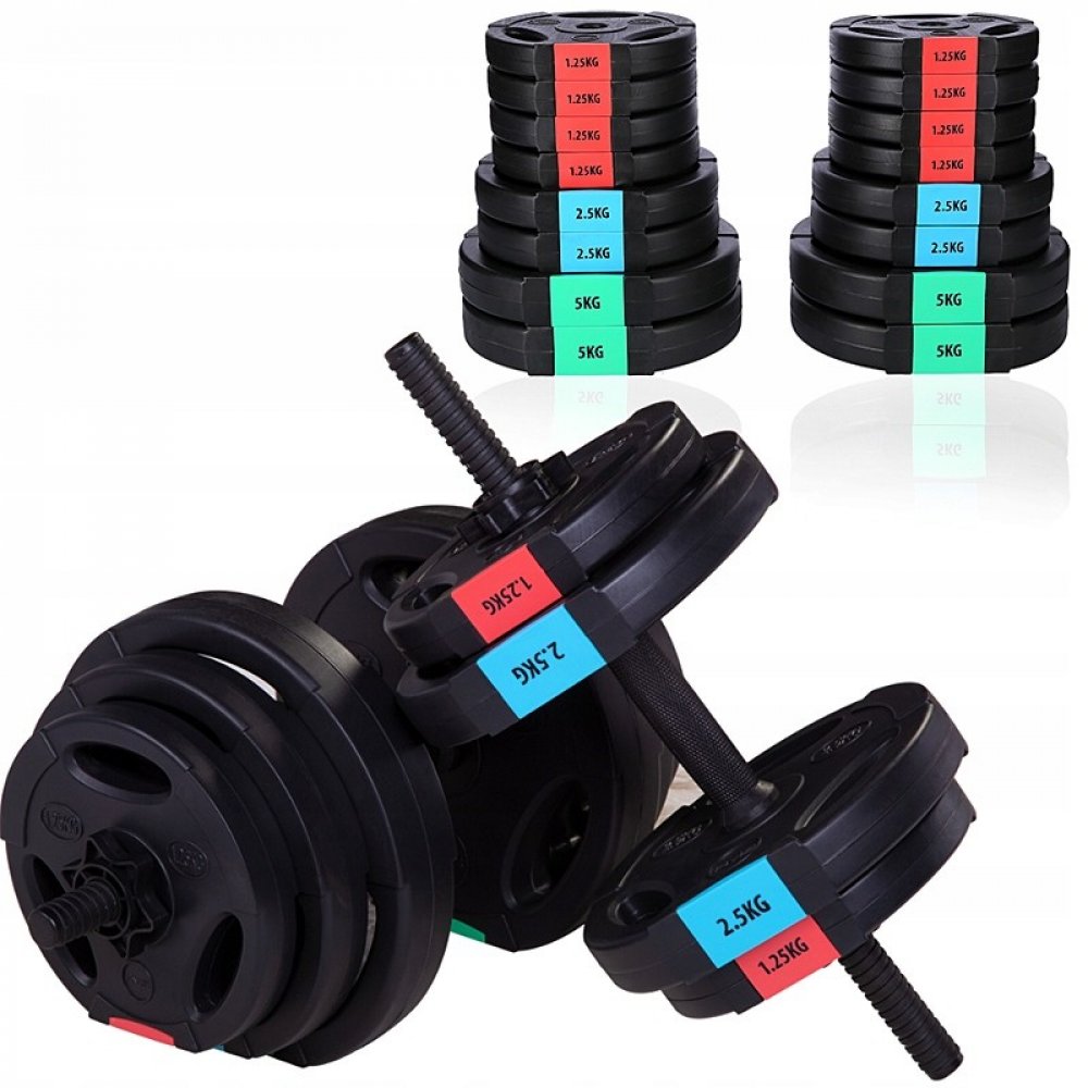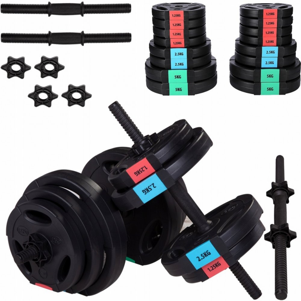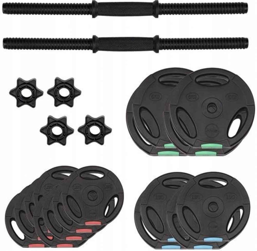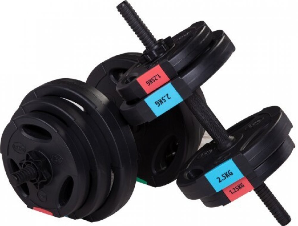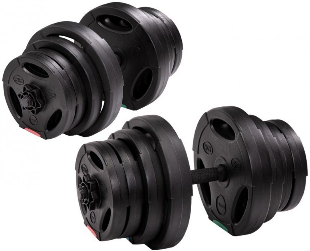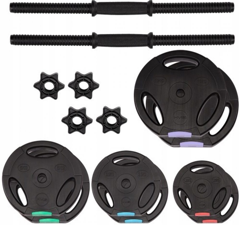 Kompletní sada dvou jednoručních, nakládacích činek o celkové hmotnosti 42 kilogramů, to je HMS SG40. Nakládací činky patří ke klasickému vybavení každé domácí posilovny.