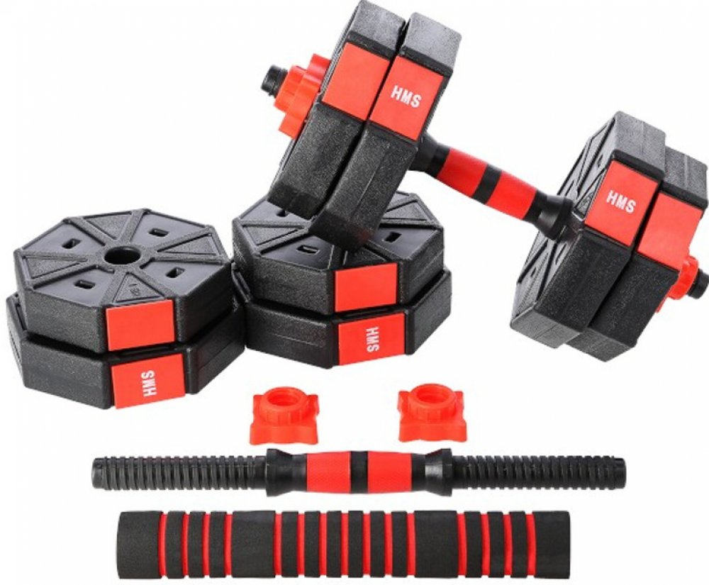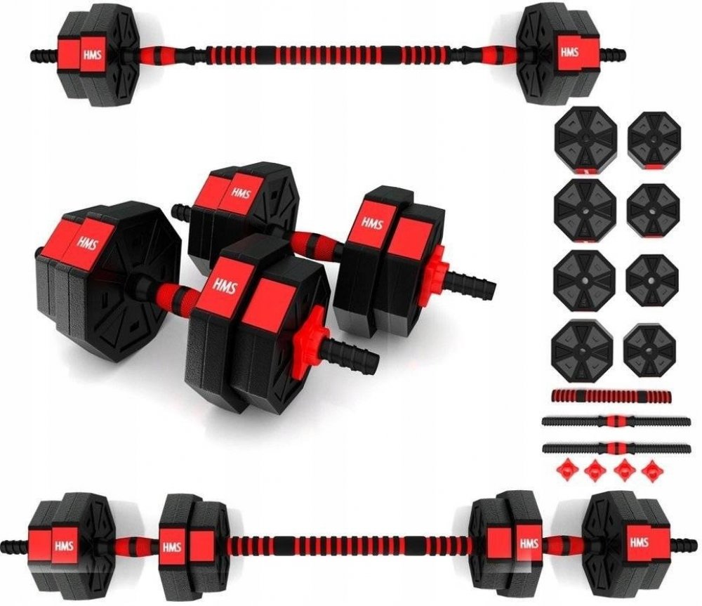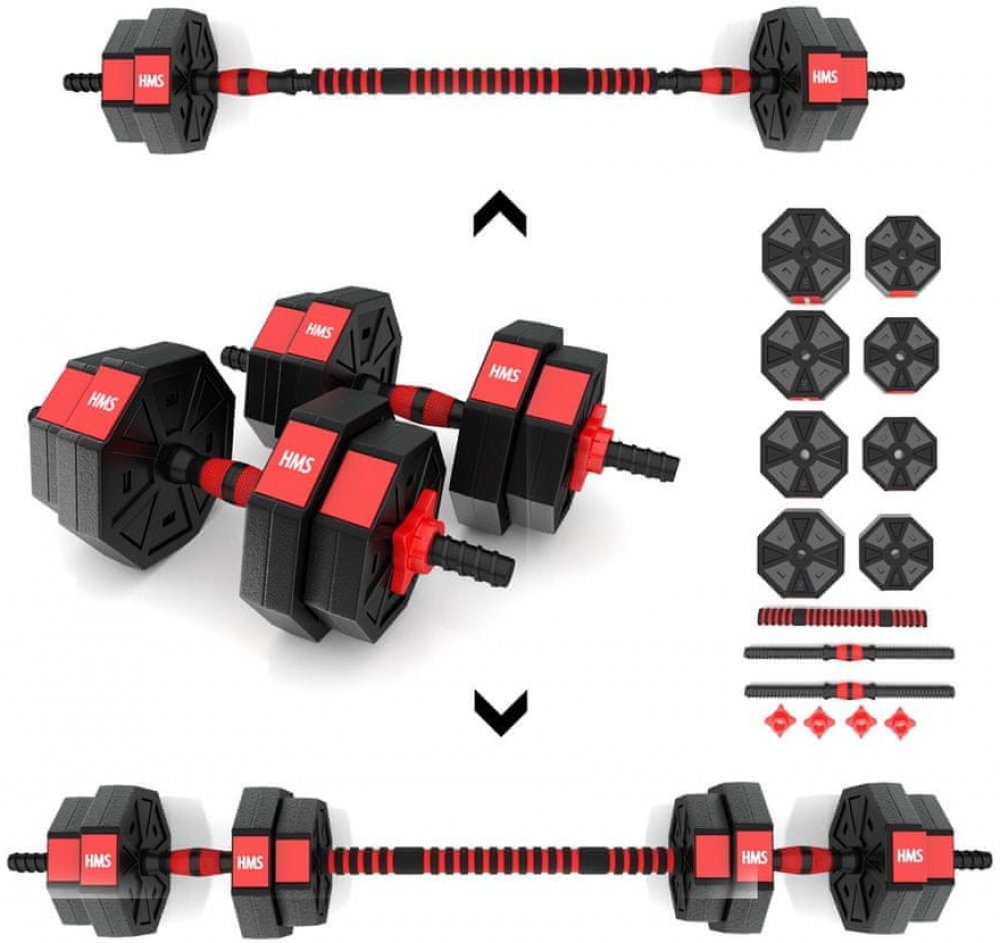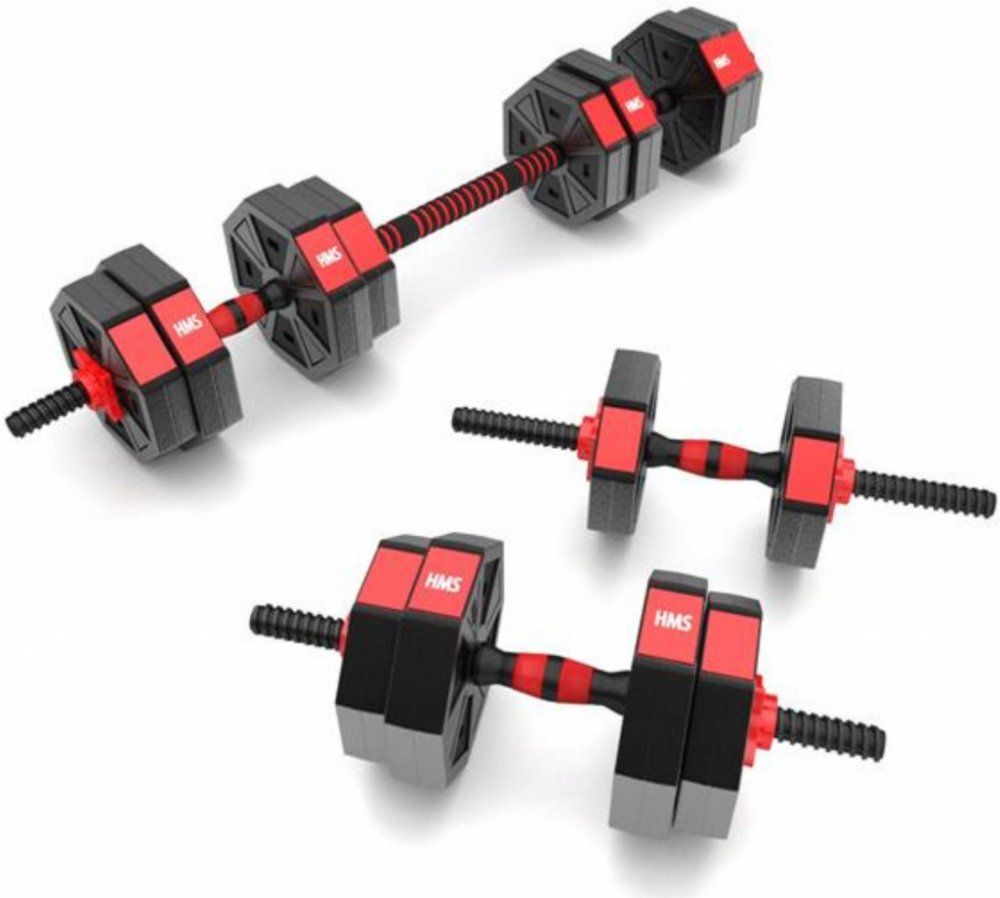 Kompletní nakládací sada dvou jednoručních a jedné obouruční činky o celkové hmotnosti 15 kilogramů, to je HMS SGC15. Nakládací činky patří ke klasickému vybavení každé domácí posilovny.