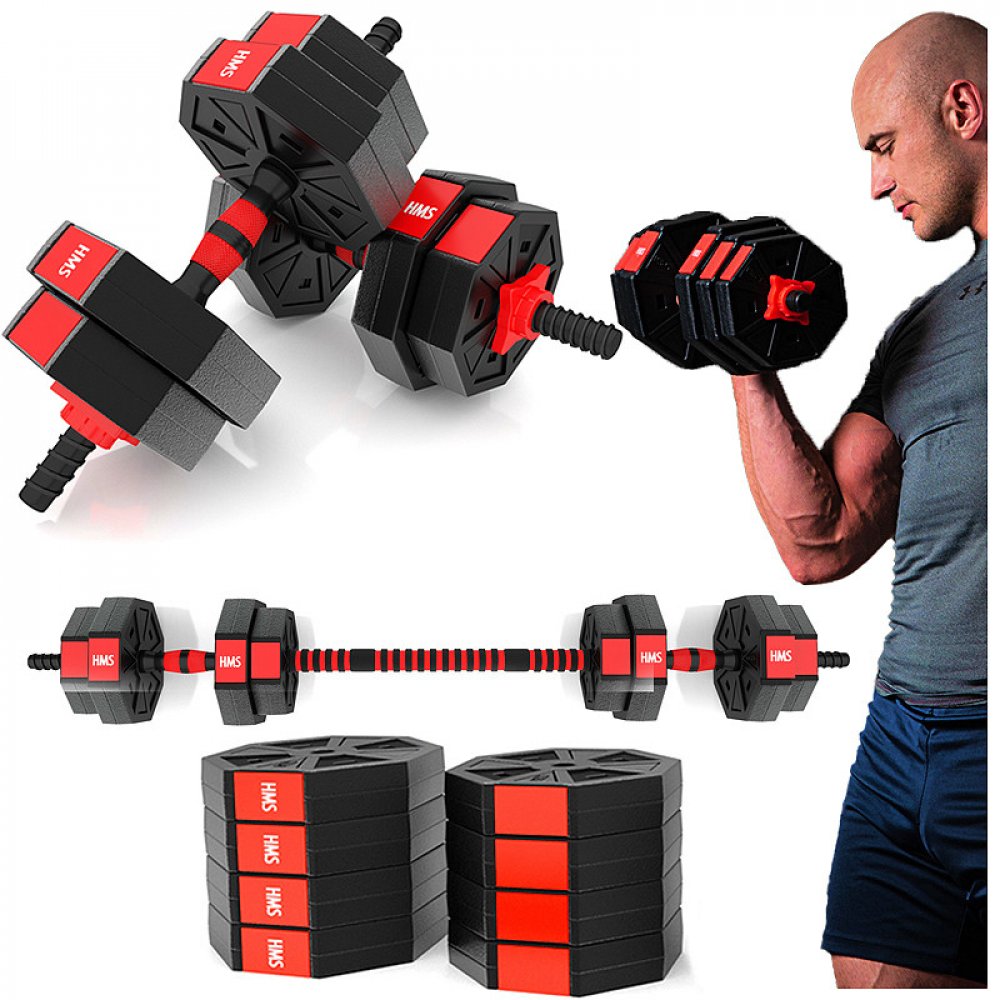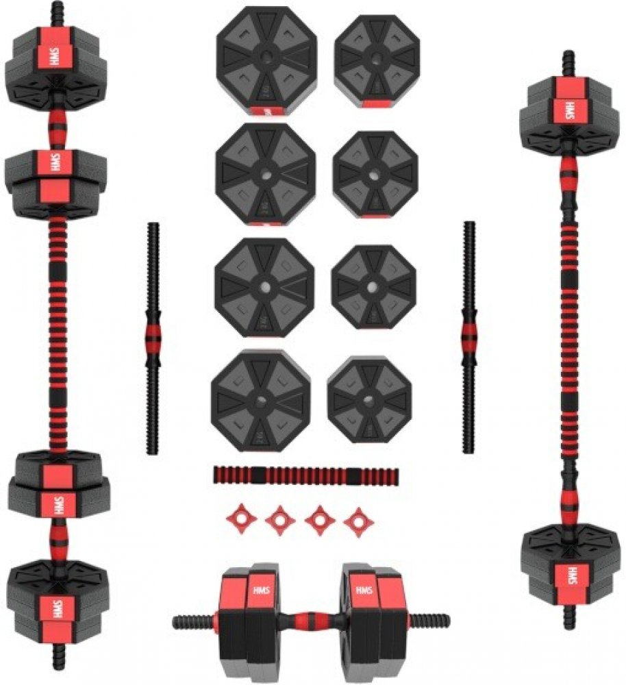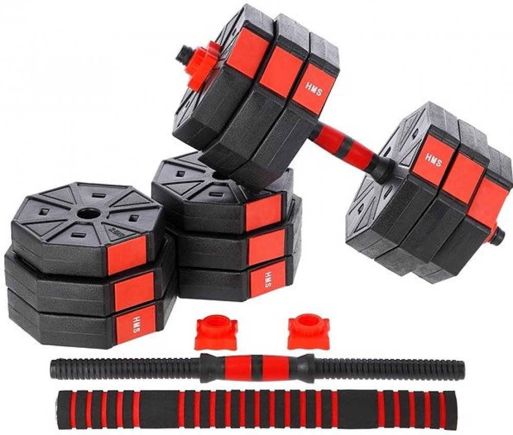 Kompletní nakládací sada dvou jednoručních a jedné obouruční činky o celkové hmotnosti 15 kilogramů, to je HMS SGC15. Nakládací činky patří ke klasickému vybavení každé domácí posilovny.