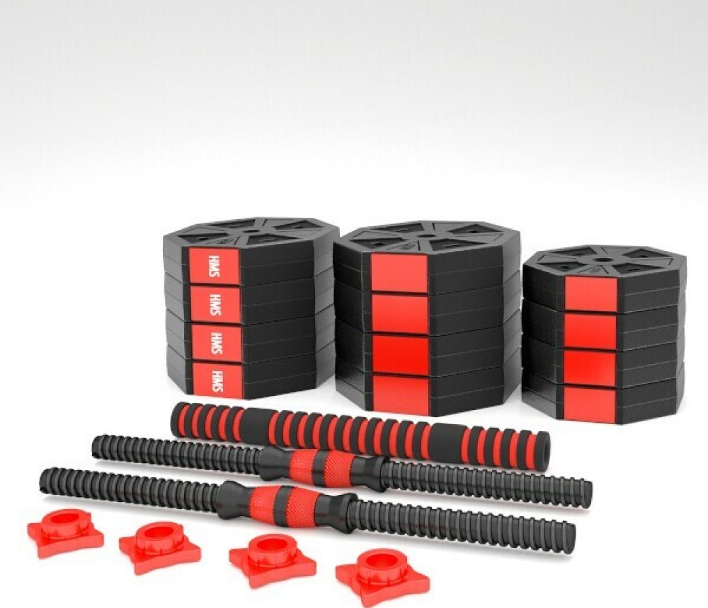 Kompletní nakládací sada dvou jednoručních a jedné obouruční činky o celkové hmotnosti 30 kilogramů, to je HMS SGC30. Nakládací činky patří ke klasickému vybavení každé domácí posilovny.