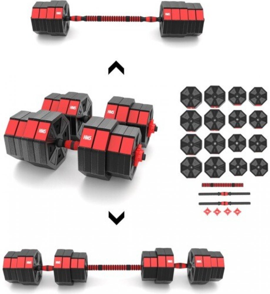 Kompletní nakládací sada dvou jednoručních a jedné obouruční činky o celkové hmotnosti 40 kilogramů, to je HMS SGC40. Nakládací činky patří ke klasickému vybavení každé domácí posilovny.