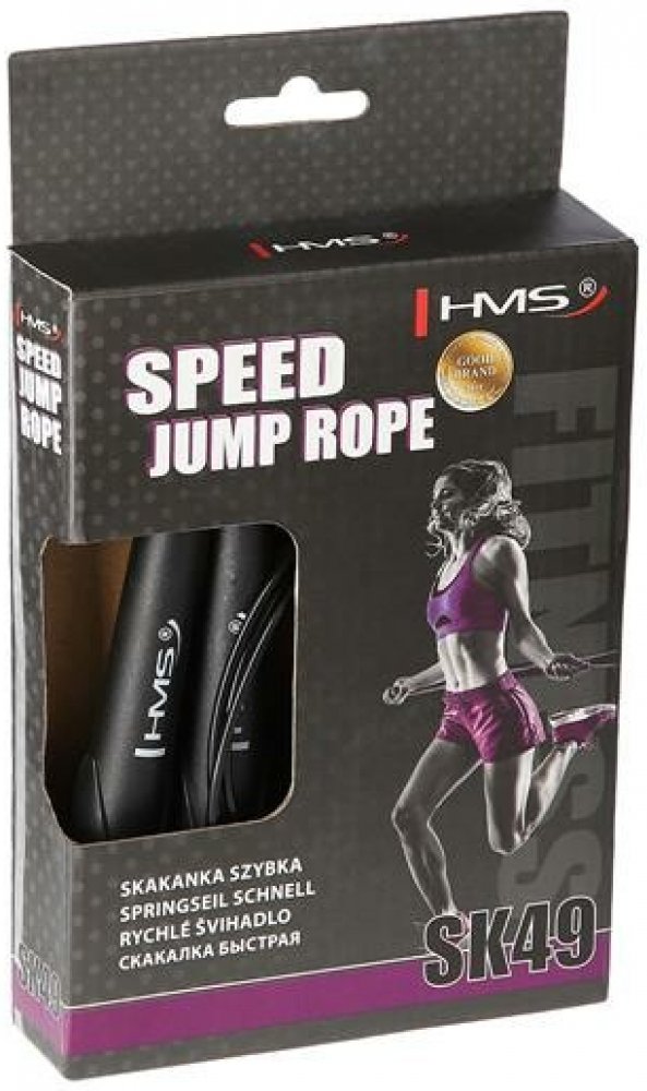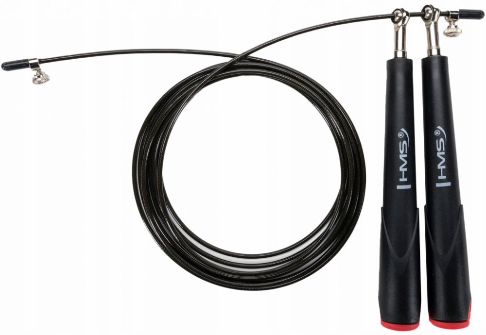Crossfitové švihadlo HMS SK49 je vybaveno ocelovým lankem, které lze díky šroubům nastavit na libovolnou délku. Rotační hlavice osazené ložisky předcházejí zamotání lanka.