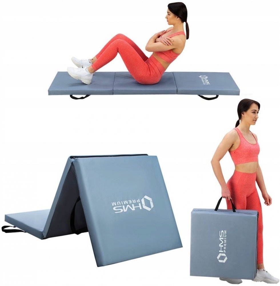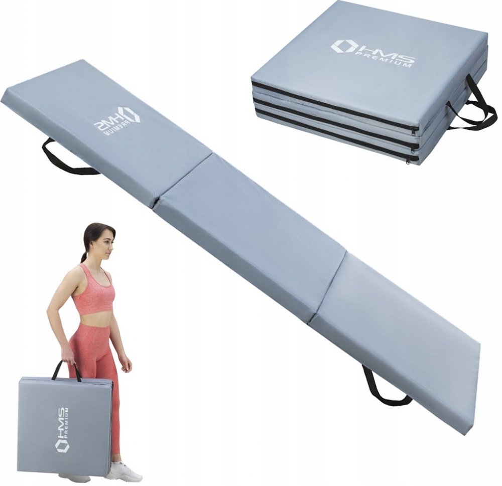 HMS Premium MGS02 je skládací žíněnka vyrobená ze tří bloků pěnového polyetylenu, které jsou vloženy do nylonového obalu. Díky tomuto řešení je možné podložku snadno složit a přenést.