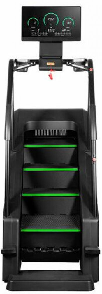 Stroj má robustní konstrukci, která zaručuje stabilitu při intenzivním tréninku. Protiskluzové schody pod úhlem 35 stupňů zajišťují pohodlí a bezpečnost při používání. Samoblokovací systém schody automaticky zastaví, pokud je zatížení menší než 30 kg.