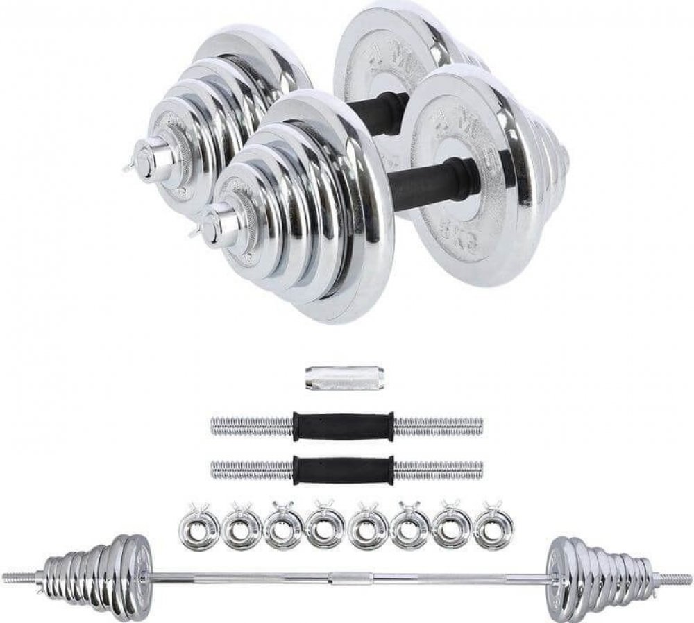 Činky jsou vyrobeny z vysoce kvalitní, chromované oceli, která je zárukou dlouhé životnosti. Kotouče se proti posunutí zajišťují šroubovacími zámky, které jsou dodatečně jištěny šroubem s křídlovou matkou....