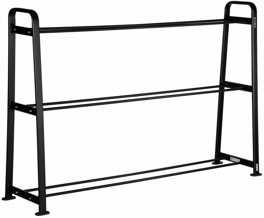S výškou 180 cm a délkou 275 cm má stojan STR43 dostatečnou kapacitu a stabilitu. Je vyroben z oceli a ideální uplatnění najde v profesionální tělocvičně a fitness studiu.