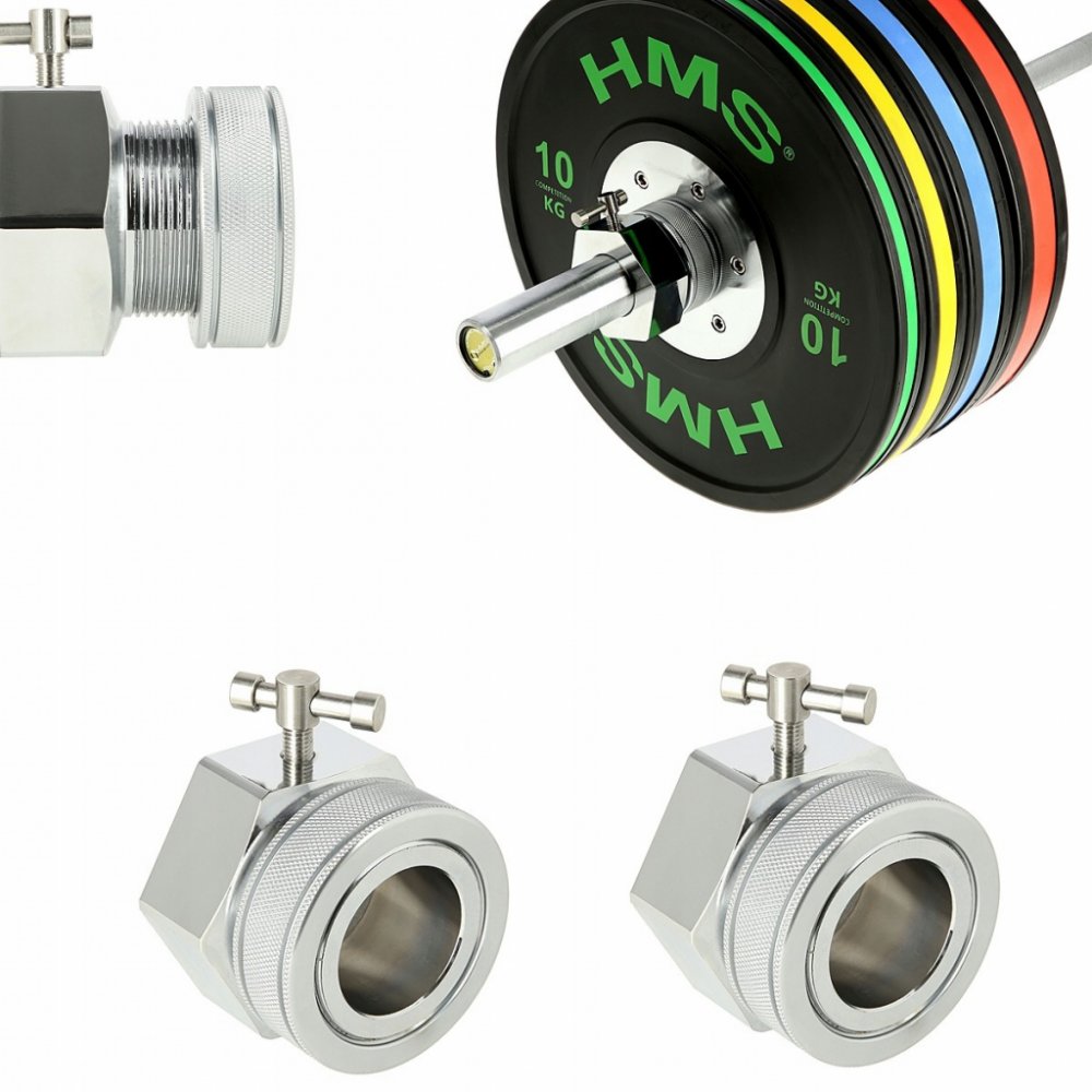 HMS ZG1600 využívá dvoustupňový uzamykací mechanismus: po nasazení na osu se nejprve utáhne šroub, který zajistí uzávěr na místě, a následně se otočí kroužek. Tím se kroužek vysune a pevně přitlačí závaží k nápravě, čímž jim zabrání v pohybu i rotaci.Každý uzávěr je precizně odlitý z masivní, povrchově leštěné oceli a váží 2,5 kg, takže jej lze využít i jako dodatečné závaží.Technický popis:- materiál: ocel- speciální systém uzavírání- průměr nápravy: 50 mm- počet kusů v balení: 2