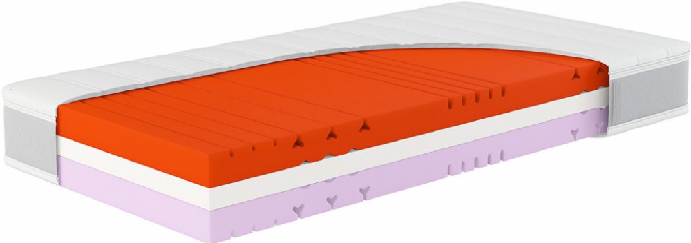 Hn8 Schlafsysteme 7zónová matrace ze studené pěny Sleep Balance Pro Pohodlná oboustranná matrace ze studené pěny 2 v 1 s inovativní technologií střihu a komfortní ramenní zónou zajišťuje pohodlí při spánku Tradice výroby matrací ve Schwarzwaldu již více než 80 let včetně několika vítězů testů od Stiftung Warentest. Vlastní šicí, čalounická a prošívací dílna s kvalitou Made in Germany Pohodlná výška cca 24 cm Různé úrovně tvrdosti pro anatomicky správný komfort při spánku Potah pratelný při teplotě do 40 °C a prodyšný – vhodný pro alergiky Spací systémy Schwarzwald Hn8 – fantastický komfort při spánku Typ jádra: studená pěna Struktura jádra: H2/H3: Strana H2 = 8 cm 7zónový komfortní pěnový potah s vlastnostmi podobnými gelové pěně + základní jádro = 6 cm Vnitřní jádro z komfortní pěny Hyperflex + strana H3 = 8 cm 7zónový potah z hybridní pěny H3/H4: Strana H3 = 8 cm kryt 7zónové hybridní pěny + základní jádro = 6 cm Vnitřní jádro z pěny Hyperflex + strana H4 = 8 cm Kryt 7zónové hybridní pěny Dvě různé úrovně tvrdosti získáte jednoduchým otočením matrace Typ potahu jádra: H2, barva pěny černá = komfortní pěna s vlastnostmi podobnými gelové pěně H3, barva pěny oranžová = hybridní pěna (spojuje pozitivní vlastnosti různých kvalit pěny - např.: buněčná struktura s otevřenými póry + dlouhá životnost) H4, barva pěny lila fialová = hybridní pěna (spojuje pozitivní vlastnosti různých kvalit pěny - např.: buněčná struktura s otevřenými póry + dlouhá životnost) Výška krytu jádra: cca 8 cm Jádro: základní jádro: 30 kg/m³; jádro tvrdosti H2: 30 kg/m³; jádro tvrdosti H3: 40 kg/m³; jádro tvrdosti H4: 40 kg/m³ Odnímatelný kryt: ano Typ zipu: 4stranný Stupeň tvrdosti: H2 střední – doporučena pro tělesnou hmotnost cca 0–80 kg H3 tvrdá – doporučena pro tělesnou hmotnost cca 75–95 kg H4 velmi tvrdá – doporučena pro tělesnou hmotnost cca 90–130 kg Proč 7 zón? Rozdělení matrace na zóny přináší lepší přizpůsobení tvaru a rozložení hmotnosti lidského těla. Základem je tvrdší nastavení tam, kde je potřeba podepřít nejvyšší hmotnost. Sedmizónové provedení nejlépe kopíruje anatomii těla. Používá se především u pěnových matrací, jejichž obecnou výhodou je poddajnost a vysoký komfort. Materiál Vnější potah: 100 % polyester Výplň: 100 % polyester Vnitřní potah: 100 % polypropylen Rozměry cca 90 x 190 cm cca 80 x 200 cm cca 90 x 200 cm cca 100 x 200 cm cca 120 x 200 cm cca 140 x 200 cm cca 160 x 200 cm Hmotnost cca 90 x 190 cm: cca 18,11 kg cca 80 x 200 cm: cca 17,18 kg cca 90 x 200 cm: cca 19,04 kg cca 100 x 200 cm: cca 20,9 kg cca 120 x 200 cm: cca 24,62 kg cca 140 x 200 cm: cca 28,34 kg cca 160 x 200 cm: cca 32,06 kg
