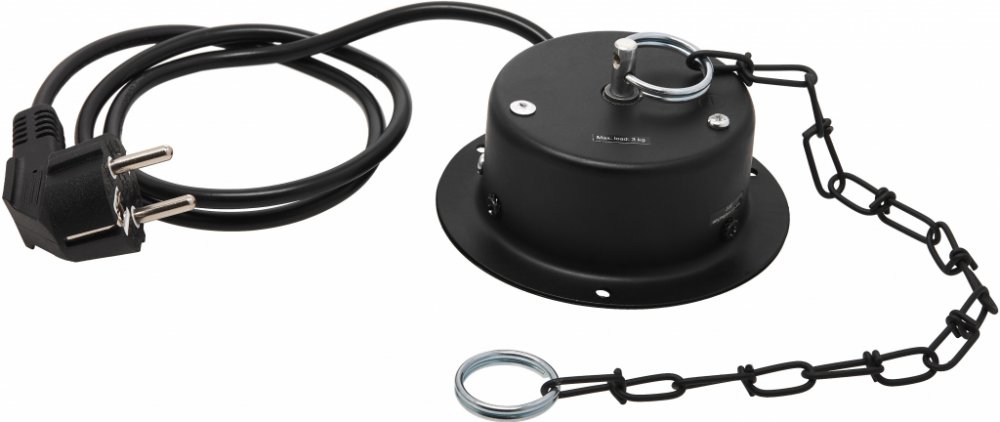 K pohonu disko koulí do max. hmotnosti 3 kg. To odpovídá u Eurolite disko koulím o průměru 30 cm. Max. nosnost se vždy vztahuje na skutečnou hmotnost disko koule vč. zavěšení a montážního materiálu. Pro disko koule do max. 3 kg·1,5 otáčky za minutu·S otevřenými konci kabelu Pro profesionální použití, např. v klubu a na diskotékách, je třeba dodržovat ustanovení BGV C1 (dříve VBG 70). Motor musí být vždy instalován s druhým, samostatným zavěšením. Před prvním uvedením do provozu je třeba nechat zařízení zkontrolovat odborníkem.