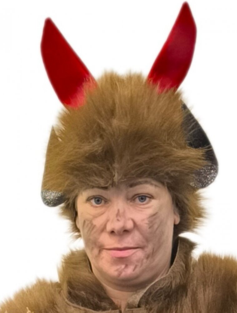 Doplňte svůj čertovský převlek touto chlupatou hnědou čepicí s rohy a ušima, která dodá vašemu kostýmu dokonalý pekelný vzhled. Čepice je vyrobena z měkkého plyše české výroby s dlouhým chlupem, díky čemuž působí realisticky a zároveň je příjemná na nošení.