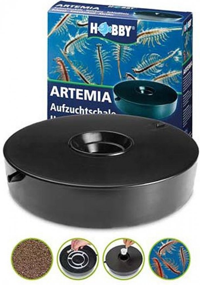 Návod na použitie: 3 čajové lyžičky Artemia salt rozpustite v 0,5 l vody. Roztok nalejte do misky až po rysku. Do vonkajšieho kruhu nasypte vajíčka artémie 1-3 odmerky (podľa potreby) a uzavrite kryt. Kryt misky nastavte tak aby bol v tvare \"closed\", aby cez otvor na boku misky nevnikalo dnu nežiaduce svetlo. Pri izbovej teplote sa artémie vyliahnu po 36-48 hodinách. Nauplie bude lákať svetlo, (otvor v strede misky), kam sa oni budú uberať. Tam ich veľmi ľahko pomocou sitka vyberieme a použijeme na kŕmenie rýb. Po použití opláchnite čistou vodou.