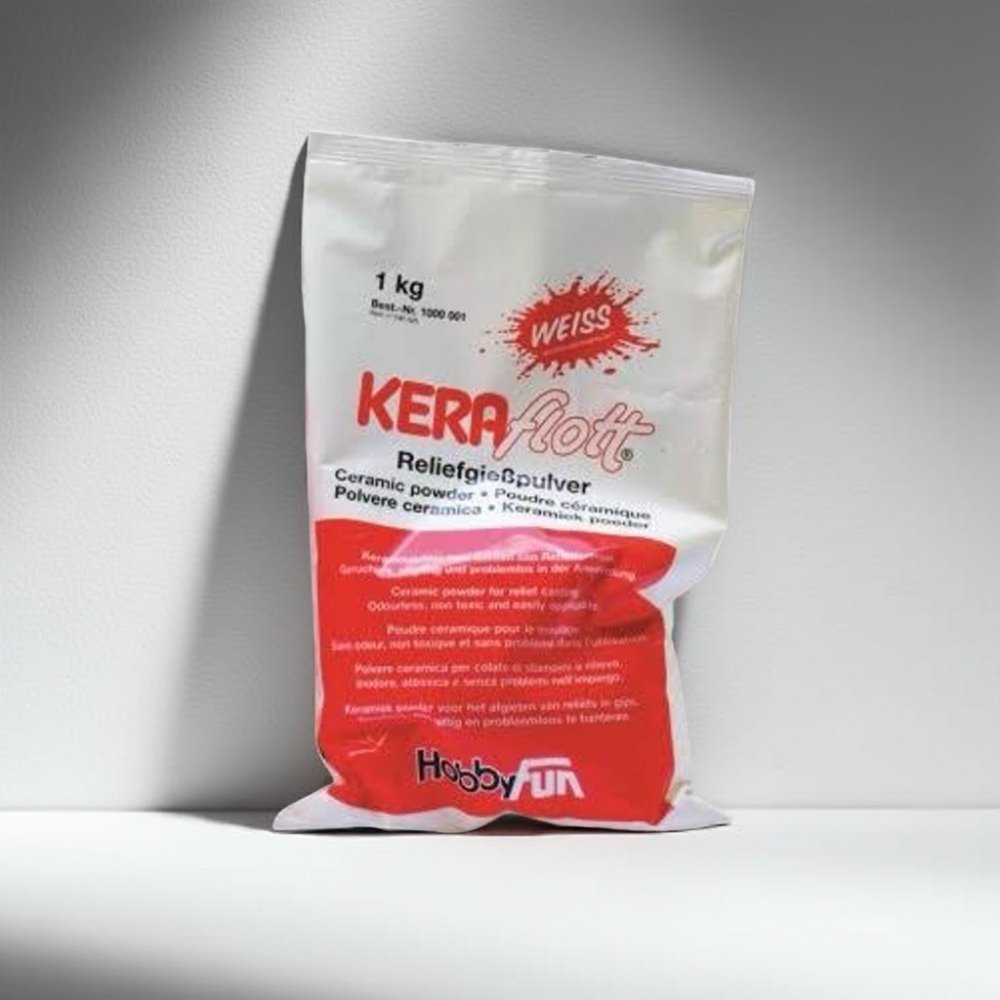 KERAflott je velmi pevný a vysoce kvalitní bílý keramický prášek určený pro odlévání do forem. Skvěle se hodí pro výrobu dekorací, figurek, reliéfů a dalších výtvarných projektů.