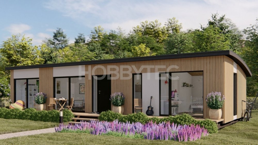 Velmi prostorný rodinný dům Hobbytec Home série LOUNGE je řešený tak, aby v něm každý člen rodiny měl svůj kout. Moderní vzhled podtrhuje střecha s klenutým stropem s dřevěnými trámy. Před vstupem do domu vás i vaši návštěvu uvítá terasa ideální pro odpolední posezení. Po otevření velkých prosklených dveří vejdete do srdce domu, do největšího pokoje, který je předurčen pro kuchyň a obývací pokoj. V montovaném domě Lounge nejsou žádné nadbytečné chodby. Oba prostorné pokoje, vhodné jako ložnice či pracovna jsou dostupné z obývací místnosti. V jejich bezprostřední blízkosti je dostupné koupelna s WC, celkem jsou v montovaném domě Longe dvě koupelny. Rozsah dodávky pro montované a mobilní domy Konstrukce domů Hobbytec Home je sestavena ze systému SIP panelů, který je recyklovatelný. Jednotlivé panely sestávají ze dvou desek OSB, včetně vrstvy z expandovaného polystyrenu, který slouží jako nosič desek a zejména jako izolace. Je to materiál, který výrazně izoluje teplo, zvuk a odolává ohni a vlhkosti. Katalog montovaných a mobilních domů ke stažení ZDE Na požádání jsme schopni zajistit realizaci jednotlivých projektů, které zákazník dodá sám. Kromě toho zajišťujeme výstavbu téměř všech domů z největší projektové kanceláře, G-servis, které jsme partnerem. Poskytujeme kompletní servis od projektu až po realizaci výstavby rodinných domů na klíč. Podrobné informace o projektech, jejich změnách, cenách projektů ... Prostor pro stavbu vašeho domu rádi připravíme, zajistíme zemní práce včetně přípojek. Případně provedeme i dokončovací stavební činnosti i potřebné úpravy terénu, případně i pokládku zámkové dlažby. Více o stavební technologii SIP Více informací na tel: 840 810 810 nebo info@hobbytec.cz
