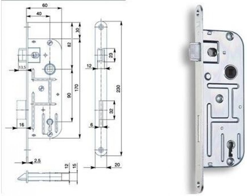 dorn 40mm zádlab 60mm čelo 230x20mm čtyřhran kliky 8x8mm rozměrové schéma v galerii obrázků záruka 24