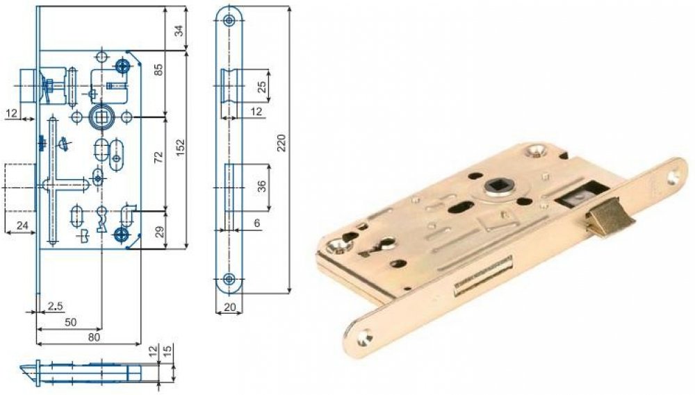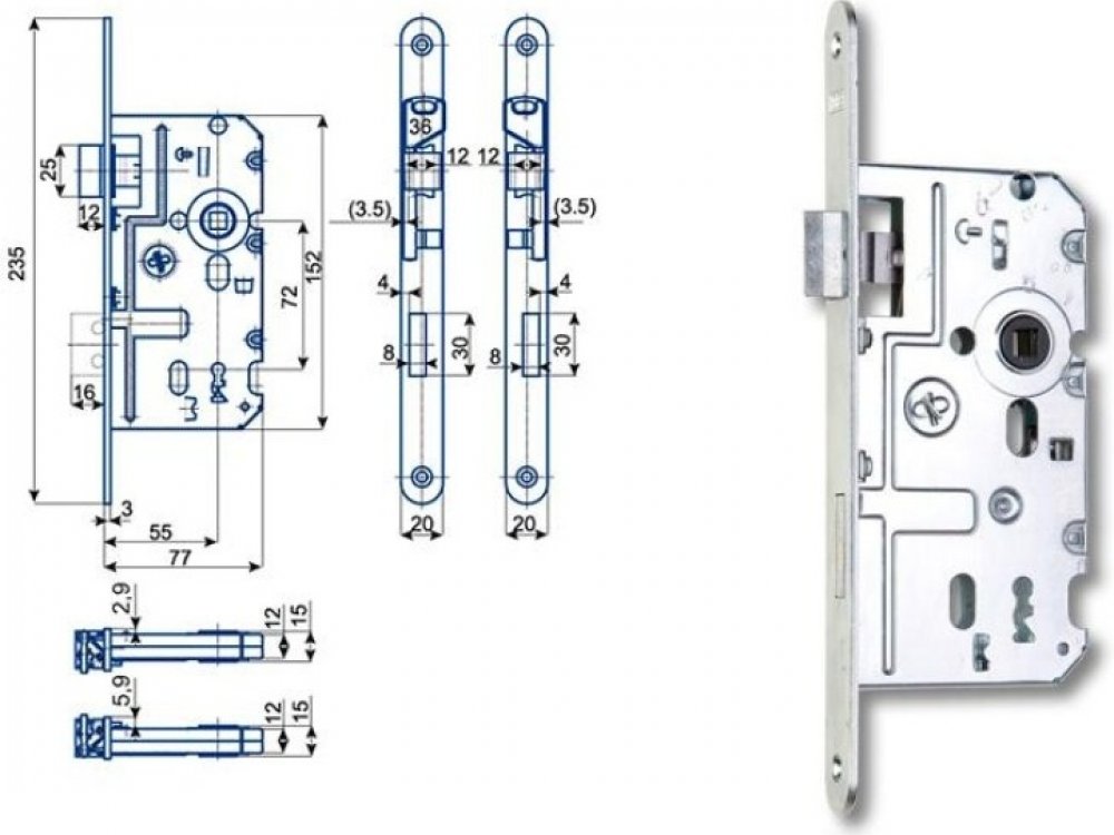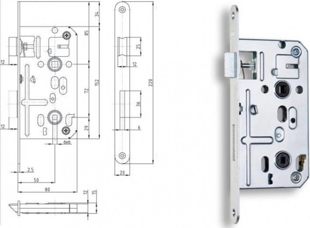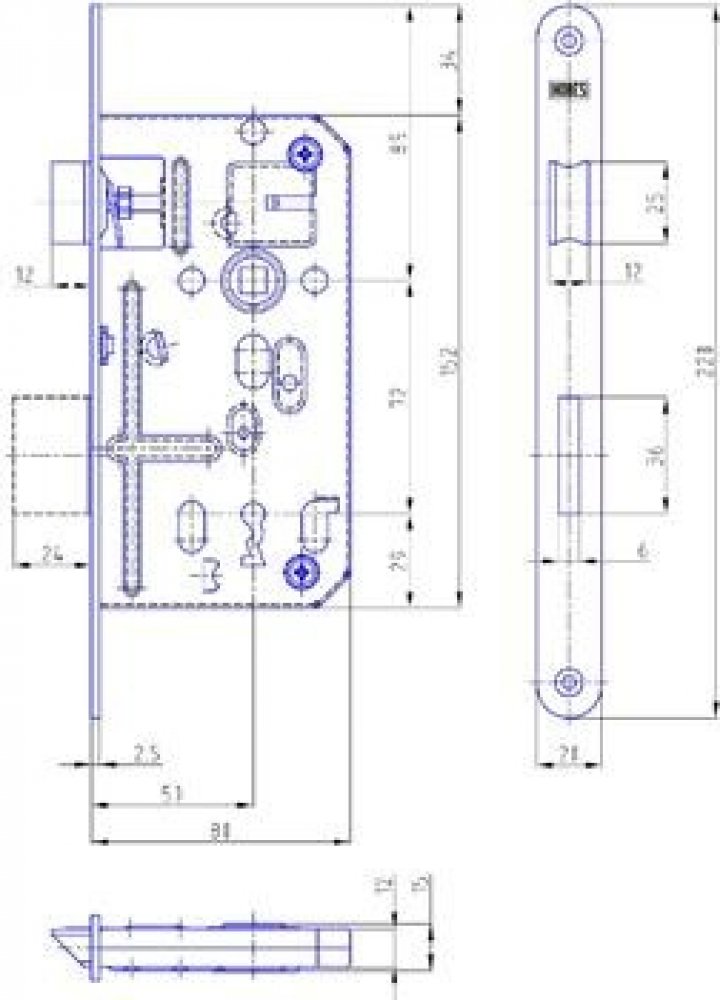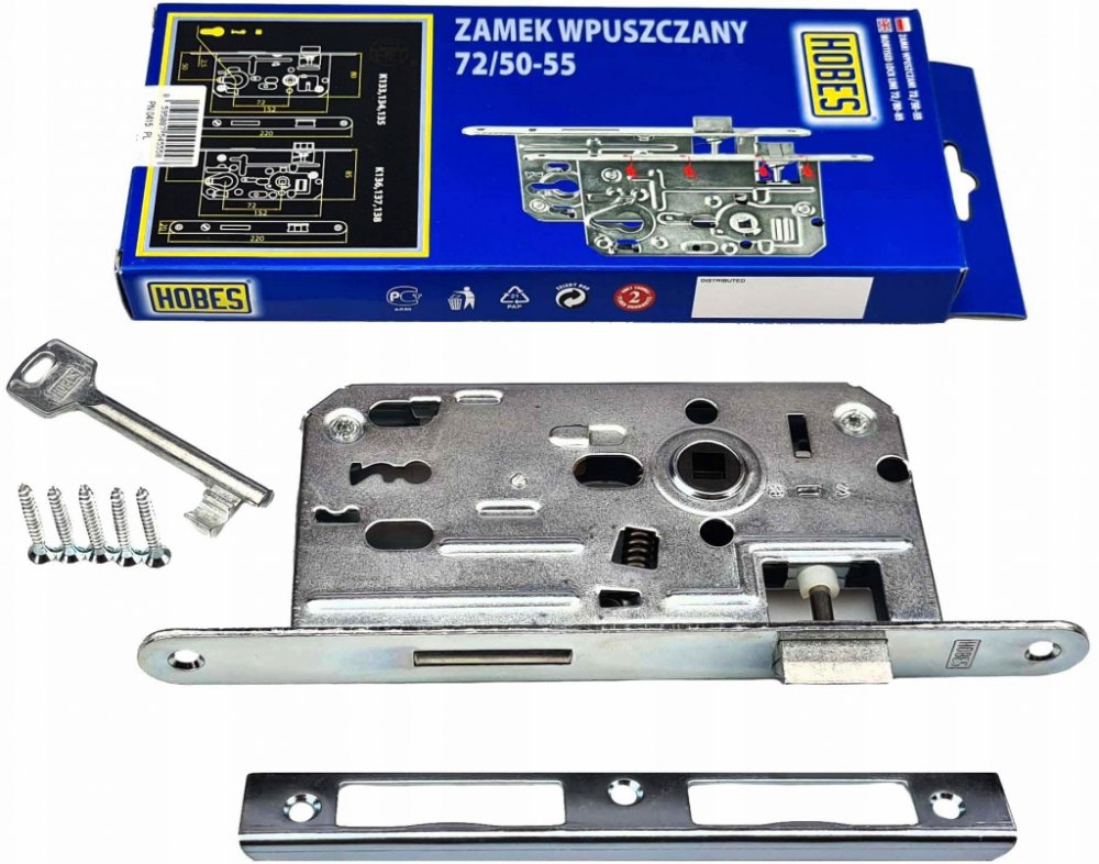 Zámek zadlabací na obyčejný klíč HOBES K134 P/L 72/50/20x220 P/L jednozápadový